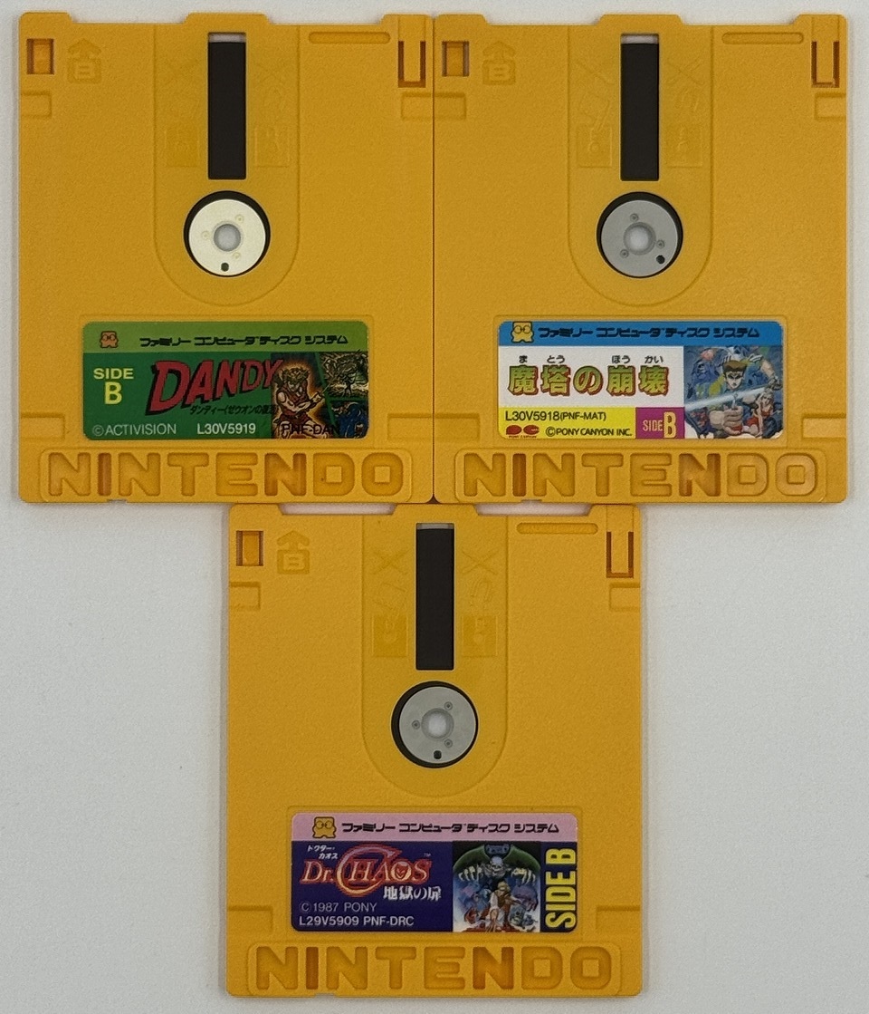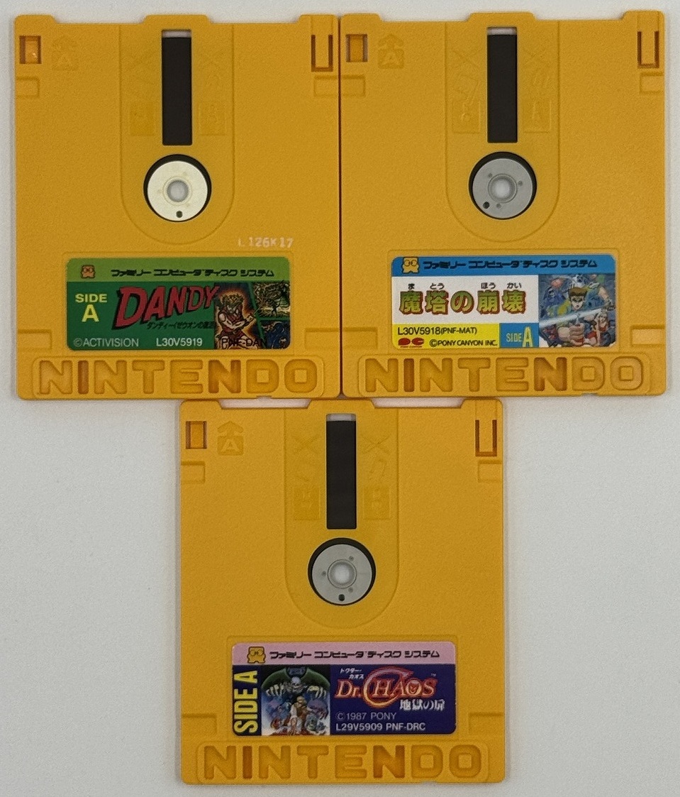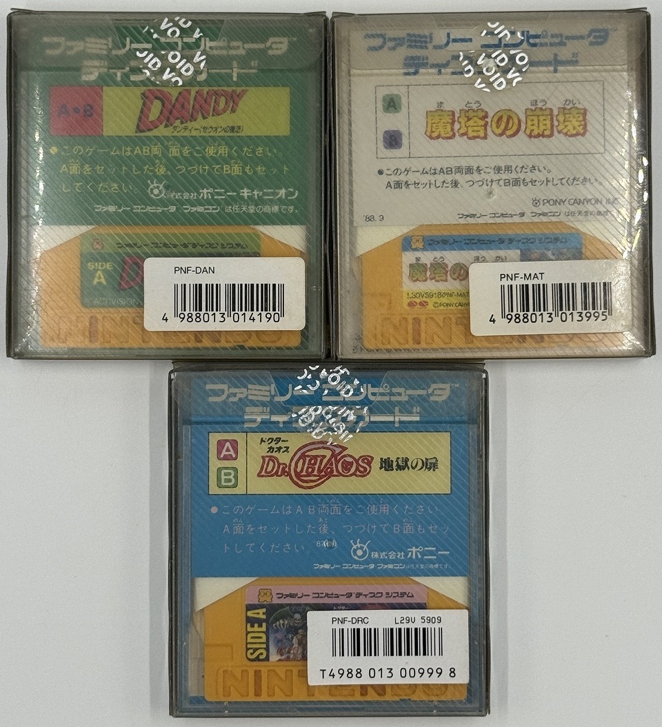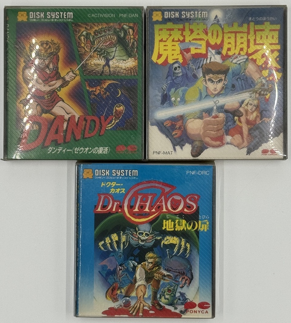 PONYCA/ ポニーキャニオン:ダンディー ゼウオンの復活/ 魔塔の崩壊/ ドクター・カオス 地獄の扉 ファミコンディスク3枚SET 箱付き中古