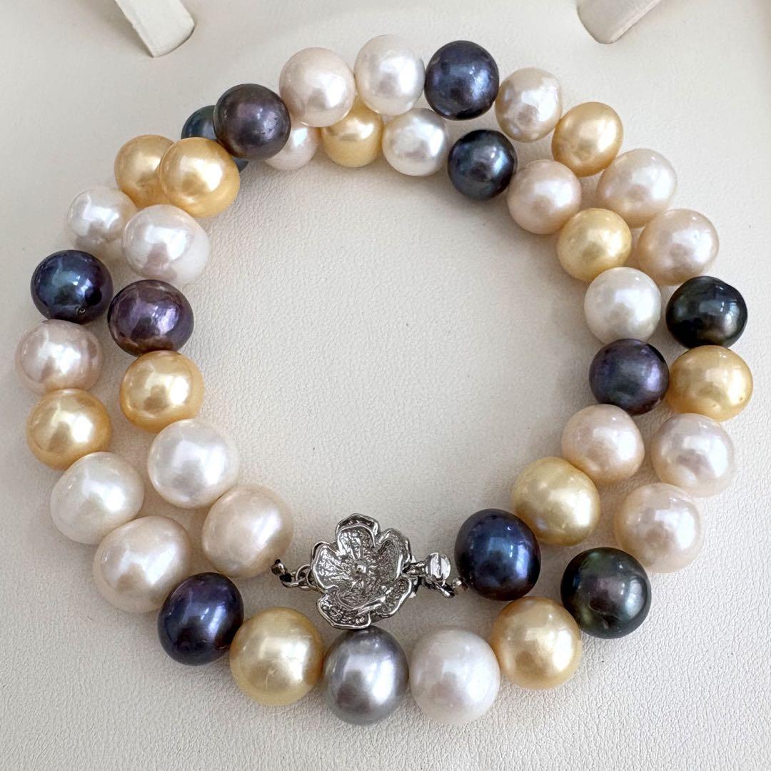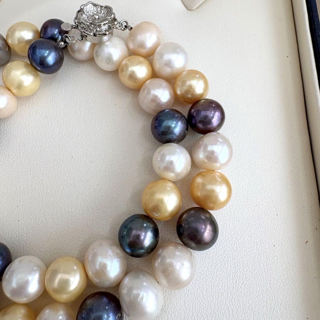 上質な南洋真珠を贅沢に使用した、マルチカラーの華やかなネックレスです。