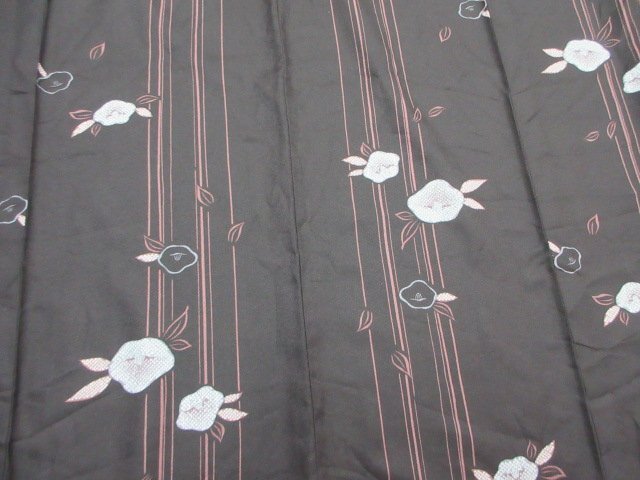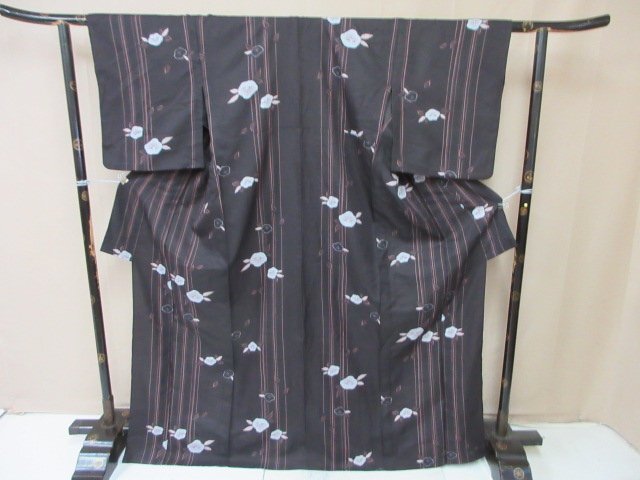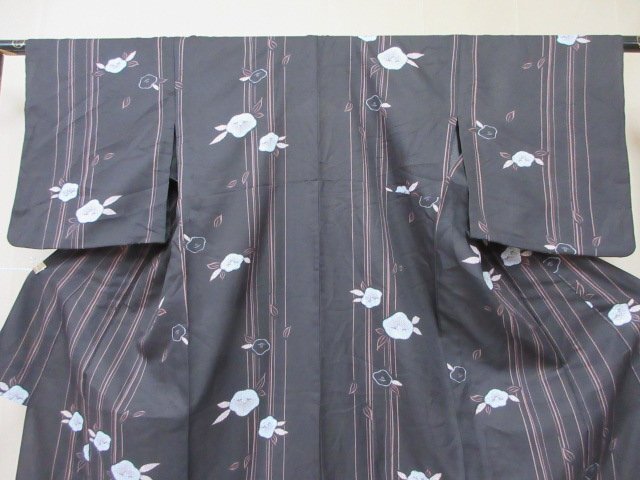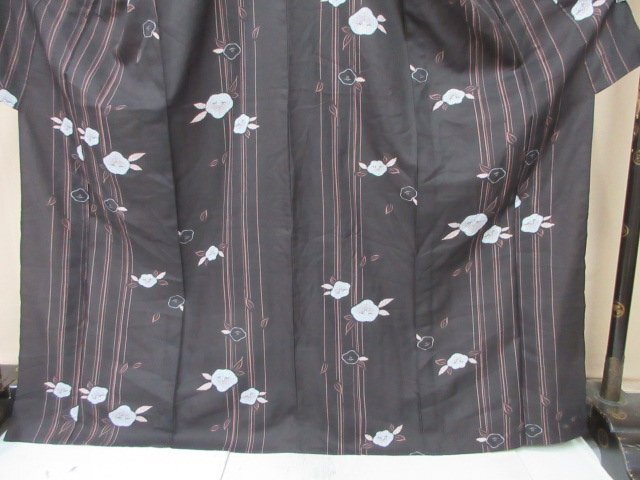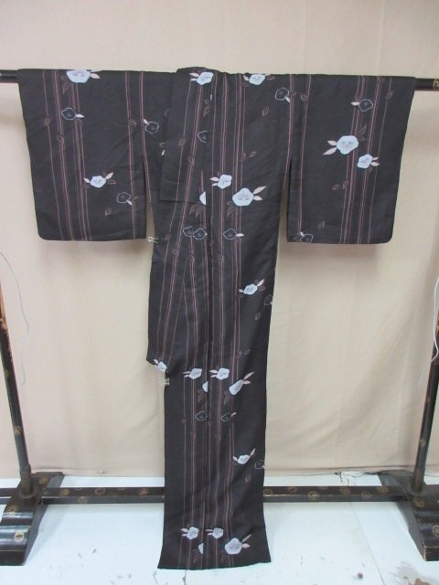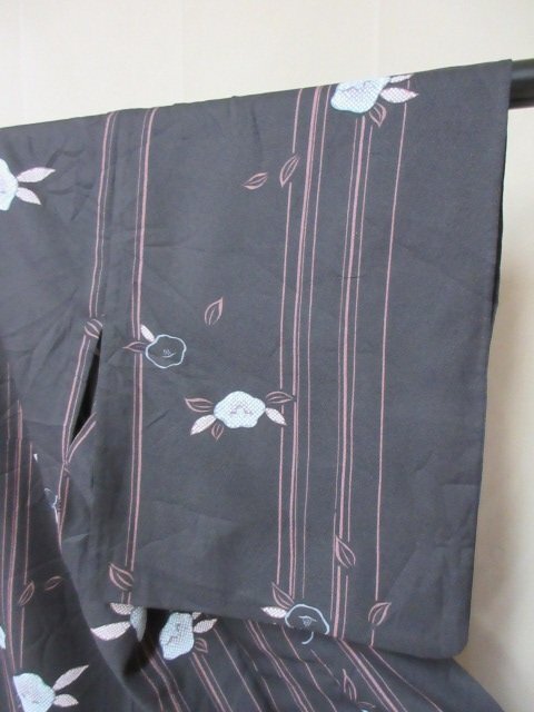 商品名 | 1円 良品 小紋 化繊 着物 洗える 和服 和服 縞 草花 椿 お洒落 高級 袷 身丈159cm 裄66cm【夢職】★ |