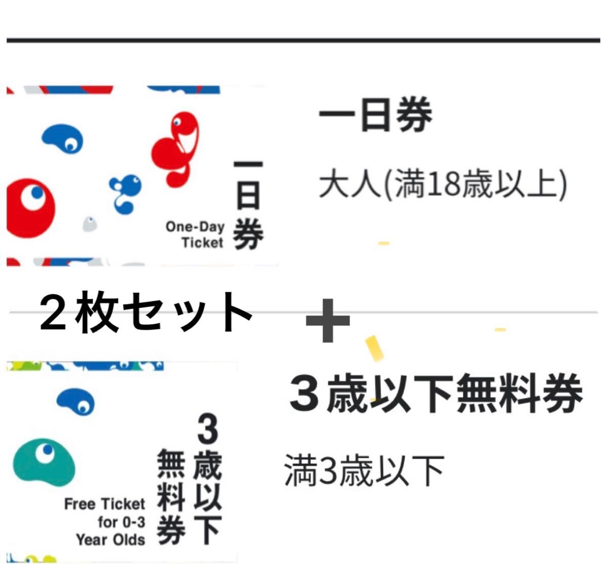 券種:大人 一日券 1枚 + 3歳以下 1枚 の2枚
