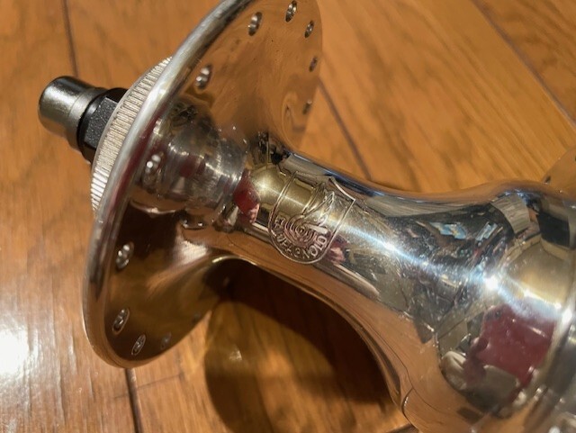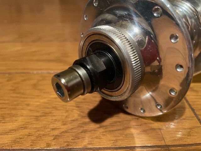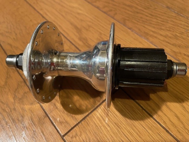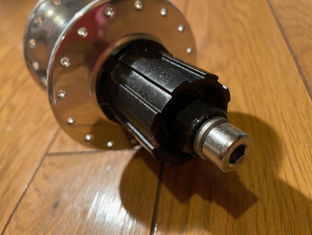 カンパ 後ハブ 32H センターロックディスク対応 オーバーロックナット135㎜ シールドベアリング内蔵 です。クイックシャフトではなく、6㎜アーレンキーボルト固定です。未使用品と思われます。