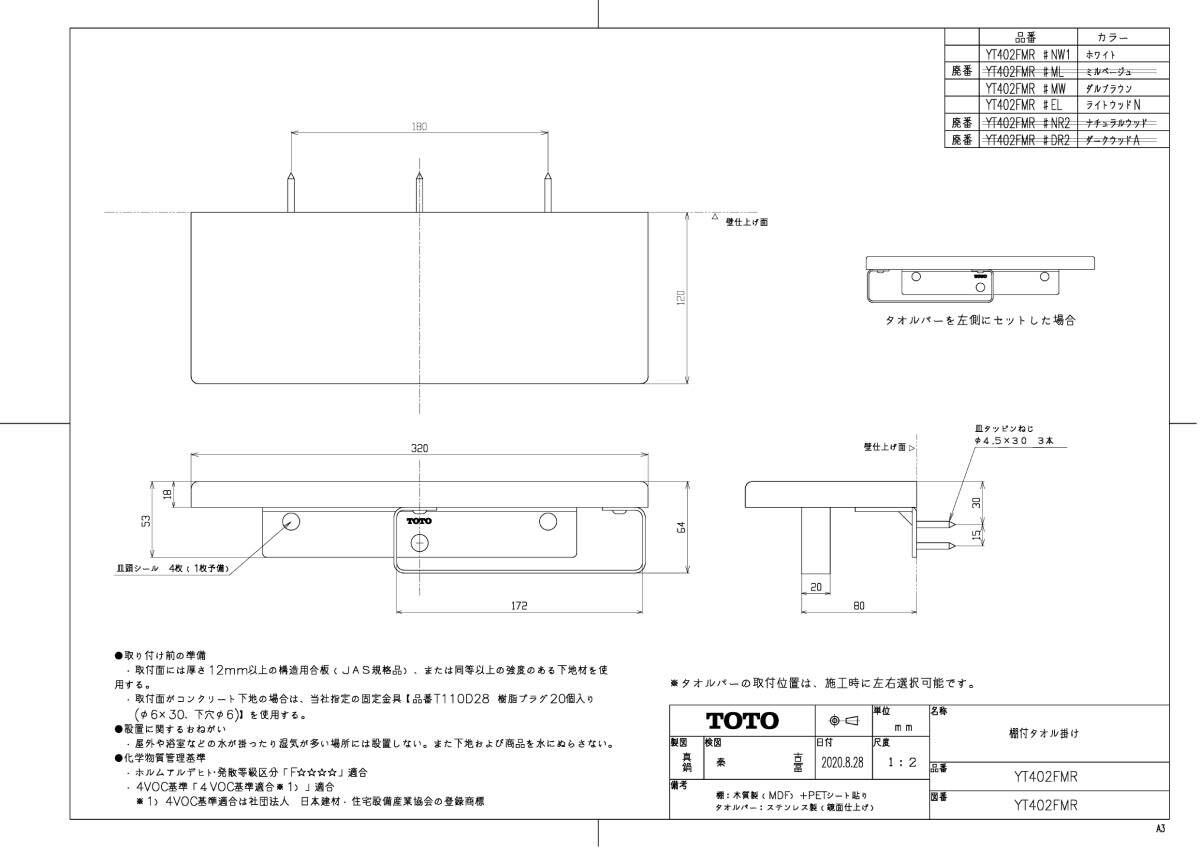 棚付タオル掛け YT402FMR #DR2 ダークウッドA 箱に汚れゆがみ等難ありますが、未使用品です。 確認のために開けました。 | |||
