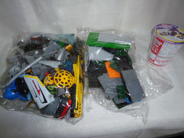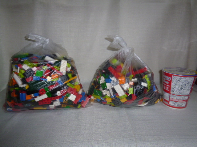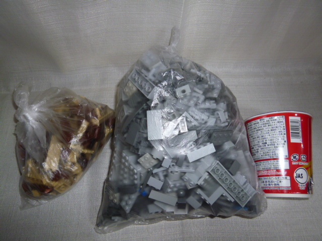 ご覧いただきありがとうございます。レゴの大量セットです。箱も入れて5.4kgありました。ブロックは色や形状で少し仕分けしてあります。例えば、細かいパーツ、板状のもの、特殊なものに加えて、茶色・黄土色系、グレー・ジャーマングレー系(結構たくさんあります) 目安としてカップヌードルを写真にいれましたので、ご参考ください。(ラーメンはつきません)よろしくお願いします。