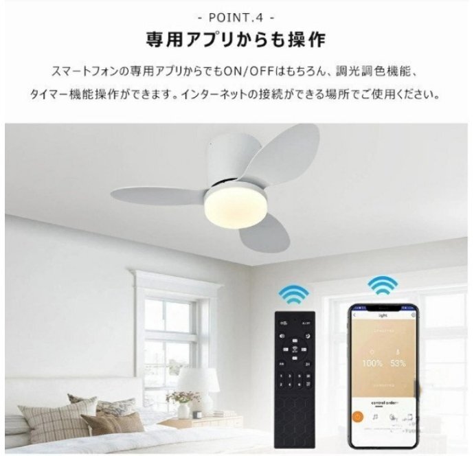 6段風量調節+連続調光調色+app制御+リモコン付き