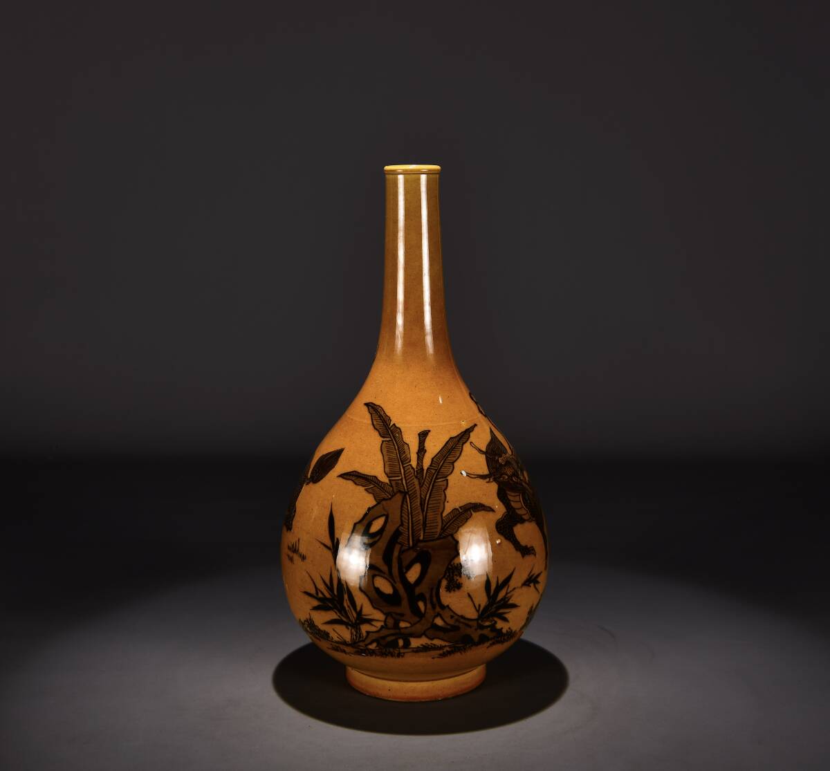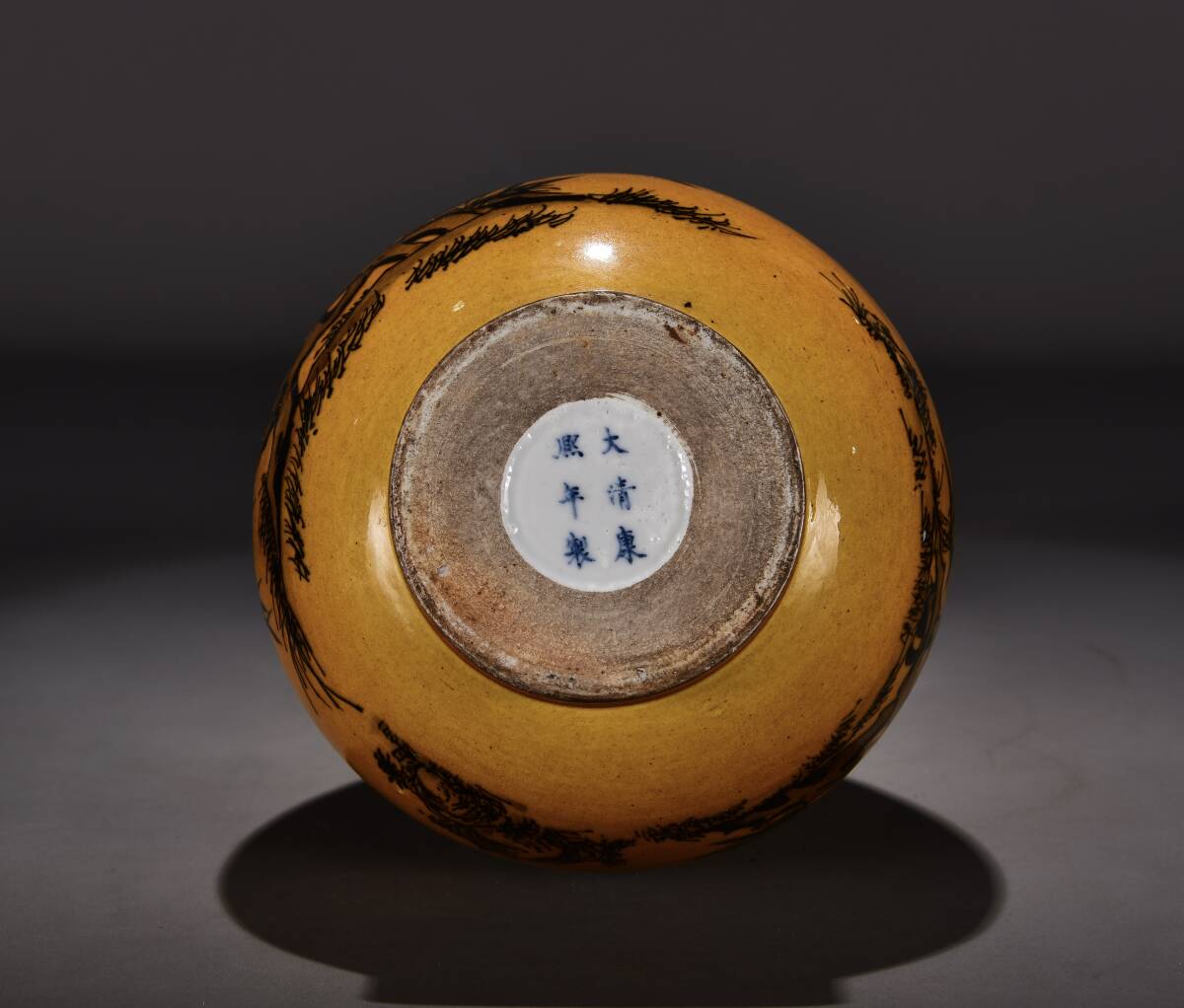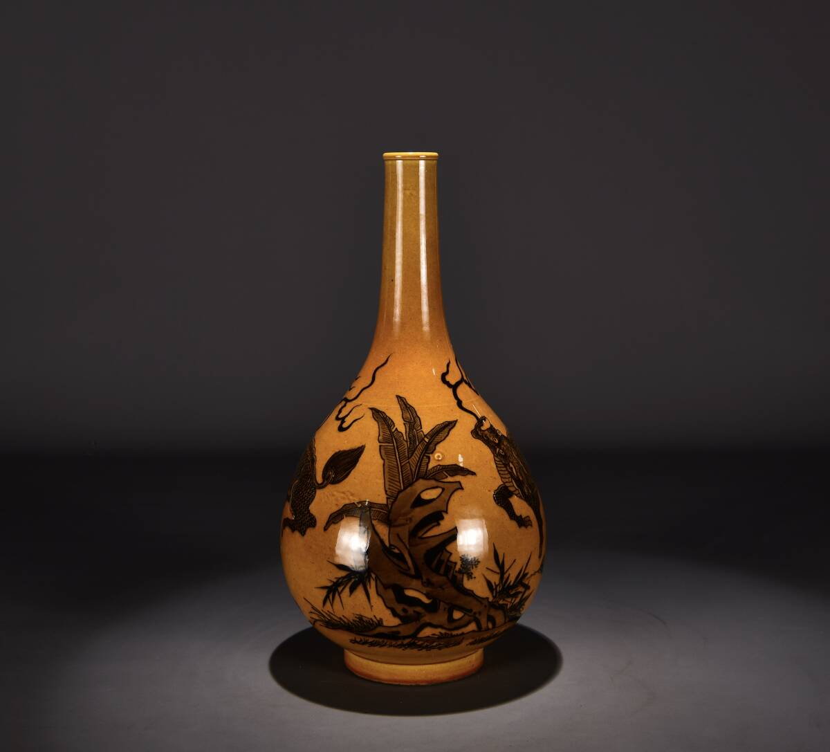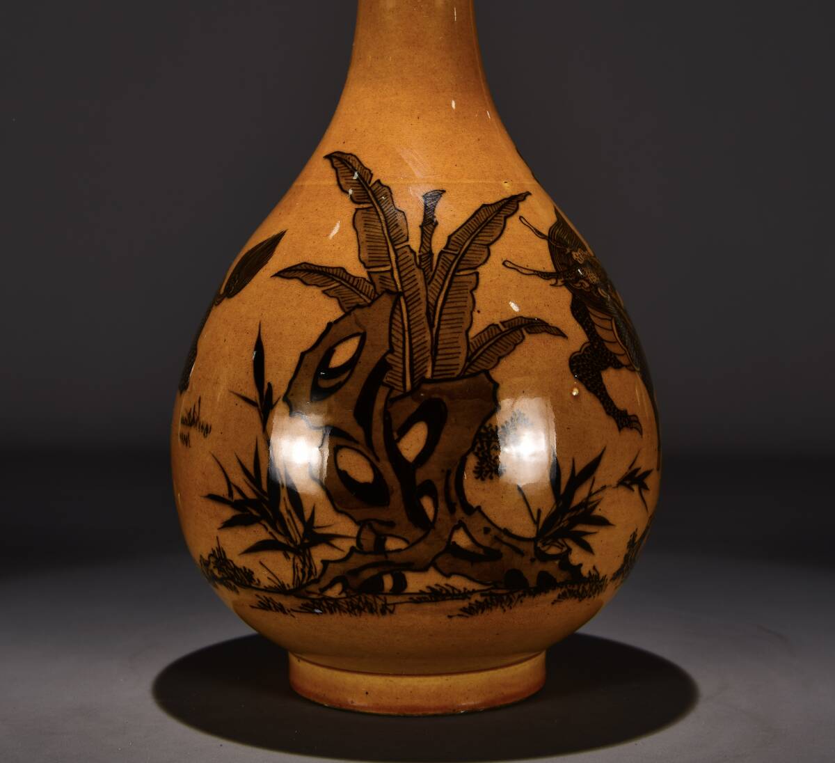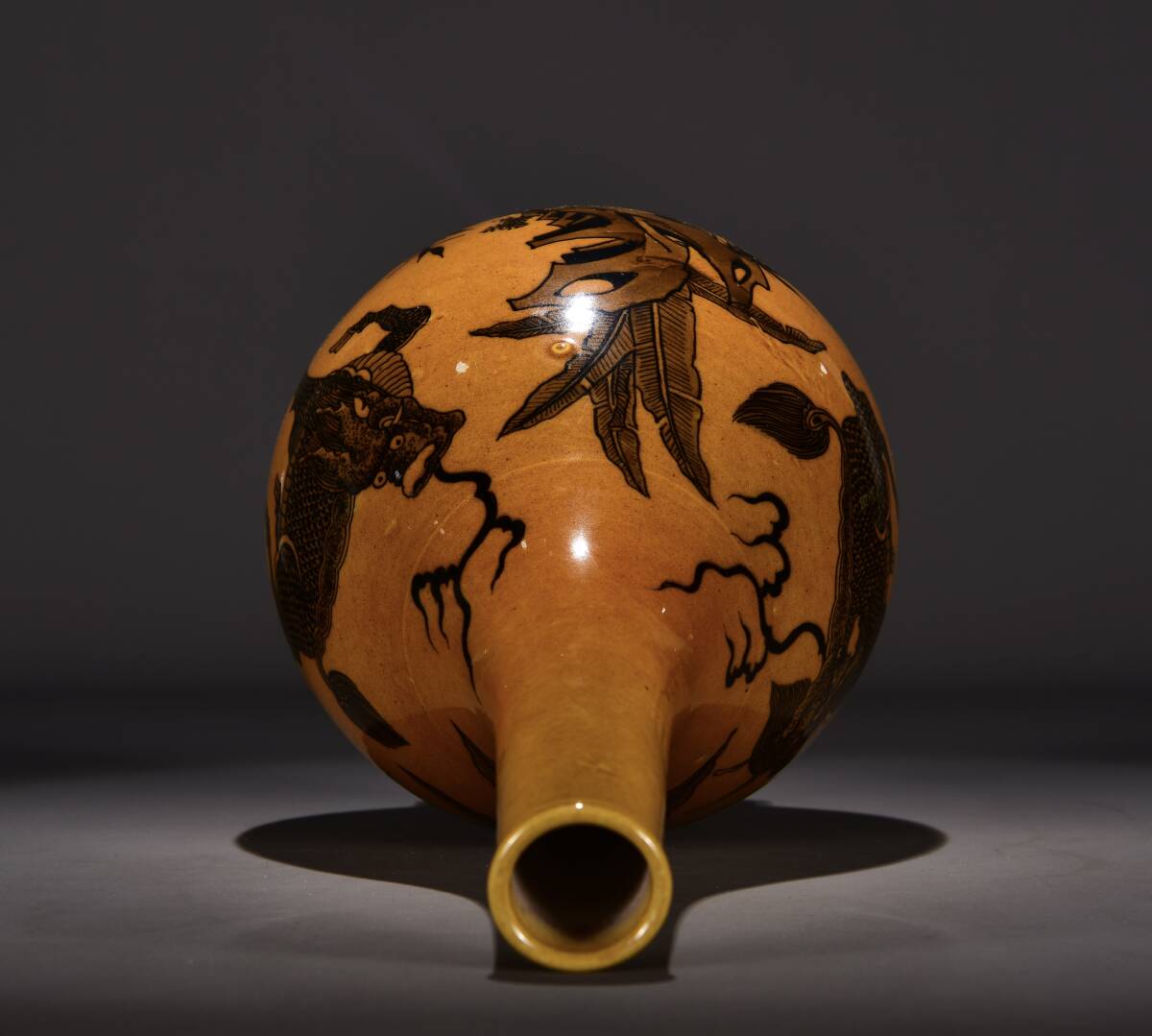 【超珍館蔵】清 康熙年制款 古陶瓷品 青花 黄釉 麒麟紋 膽瓶 陶藝 古賞物 古董品 古美術品 時代物 旧家蔵出 稀少珍蔵品