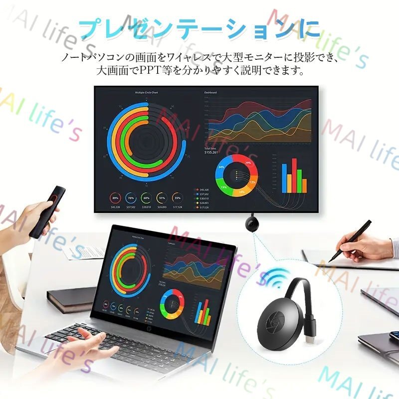 2025 オフィス用ワイヤレス HDTV をミラーリング携帯画面をテレビに映す映画/テレビ/ゲーム/会議 タイムラグ音ズレなし接続