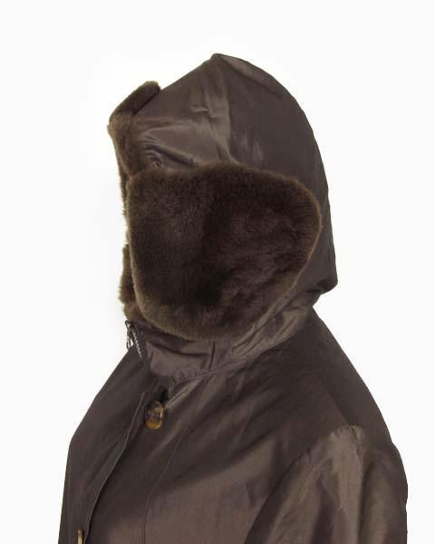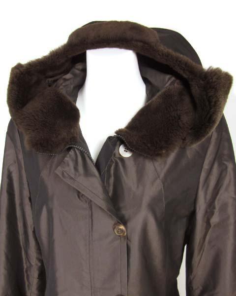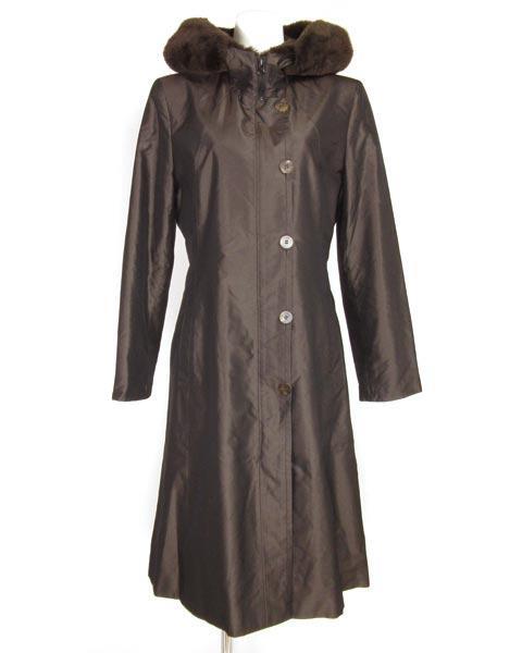 | フォクシー(FOXEY)こげ茶綿入りファー付コート F |