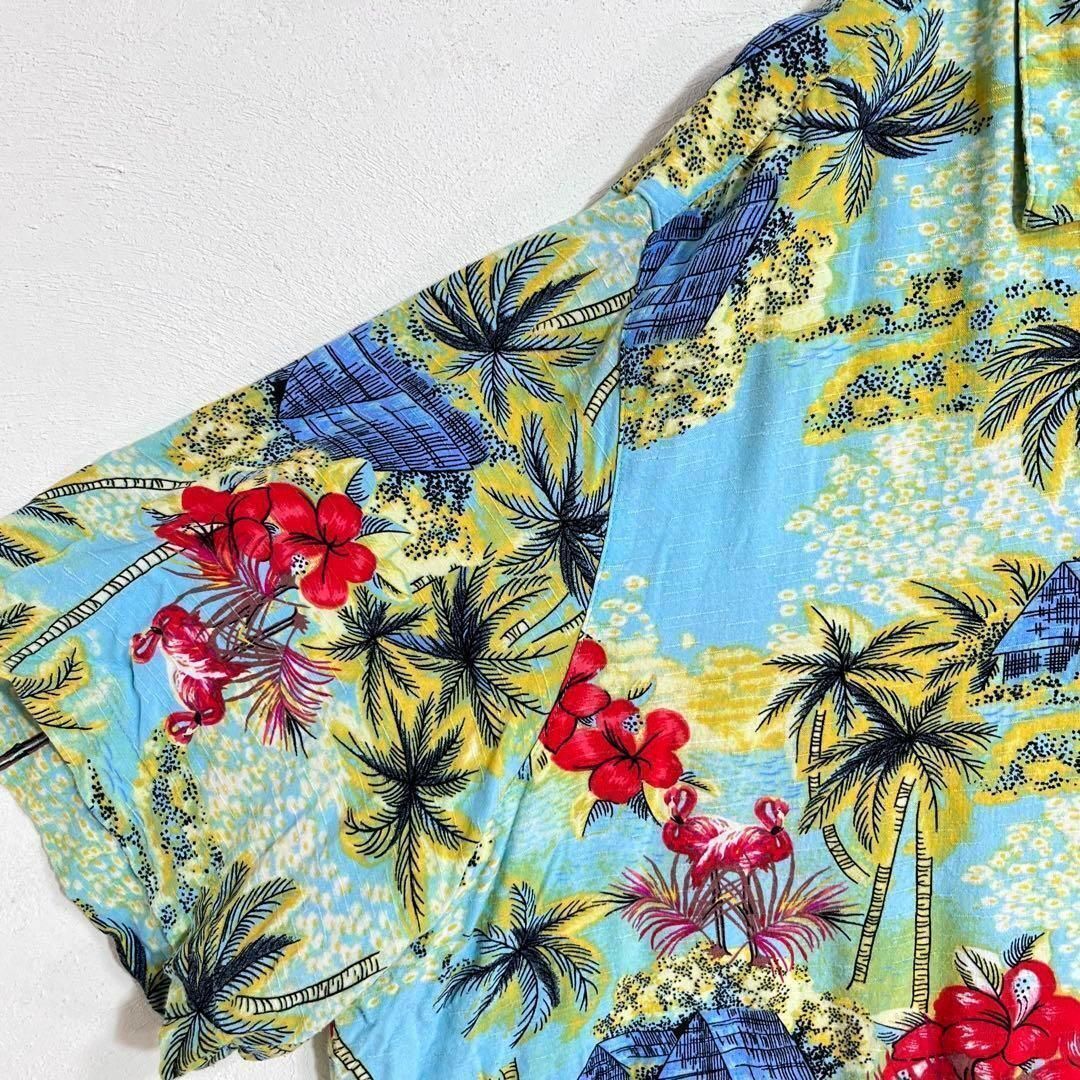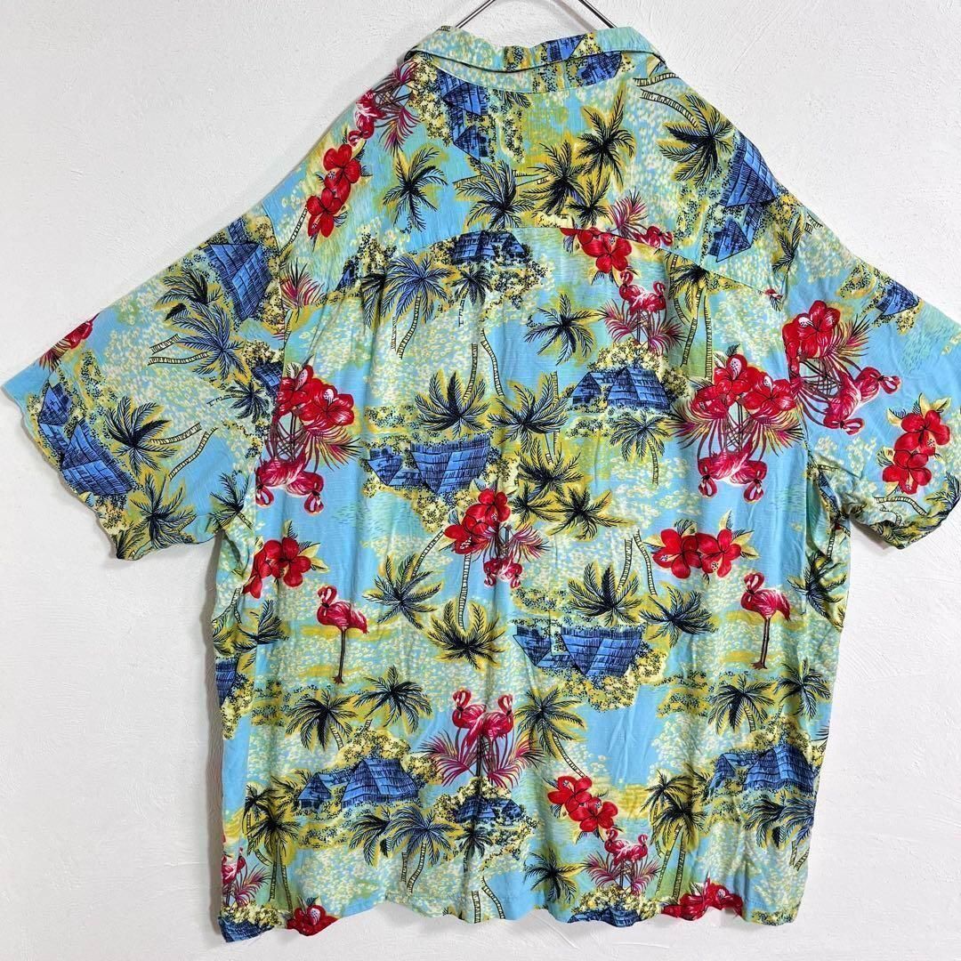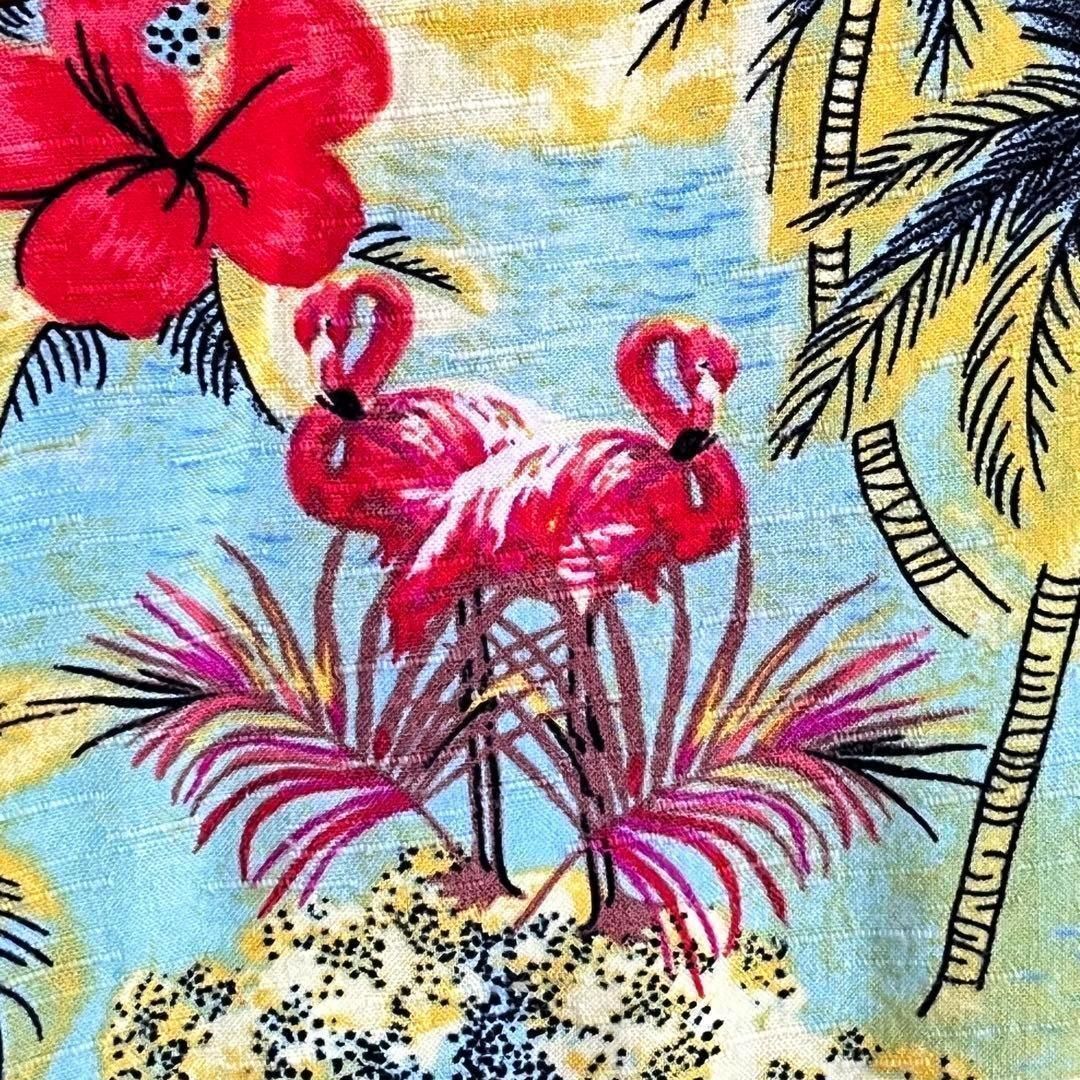 ★商品名★バングラデシュ製 ハイビスカス フラミンゴ ヤシの木柄 小花模様 半袖 アロハシャツ メンズ