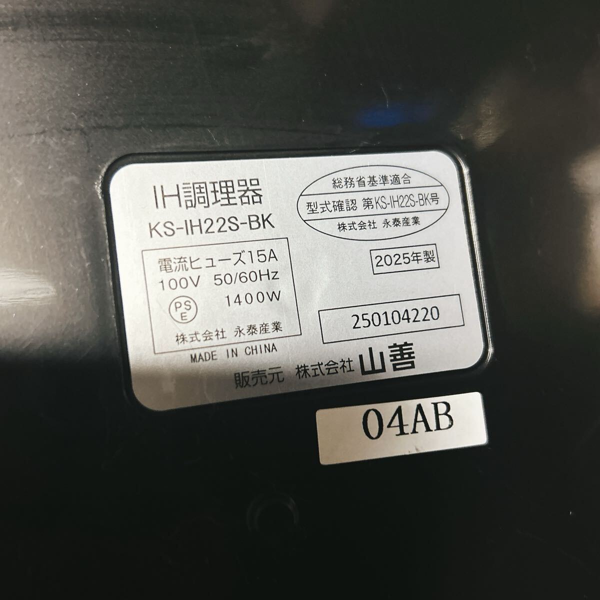 山善の卓上型IH調理器「KS-IH22S-BK」です。