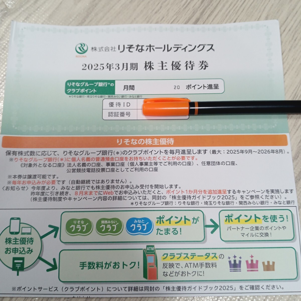 りそなホールディングス 株主優待 りそな銀行クラブポイント 月間20ポイント です。