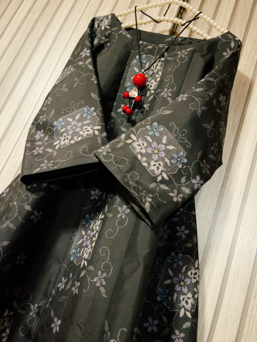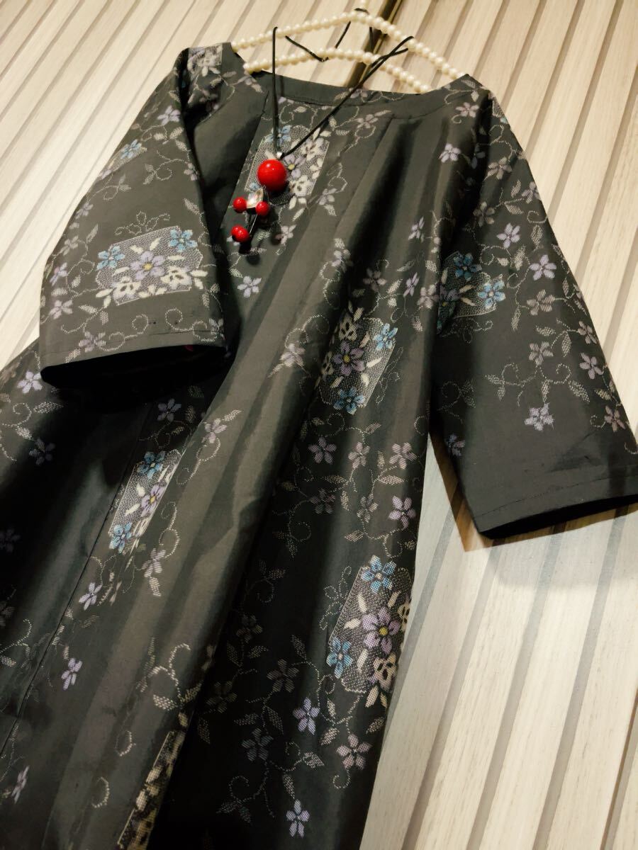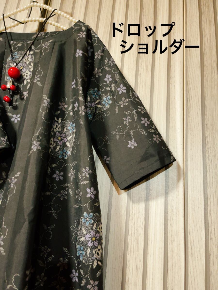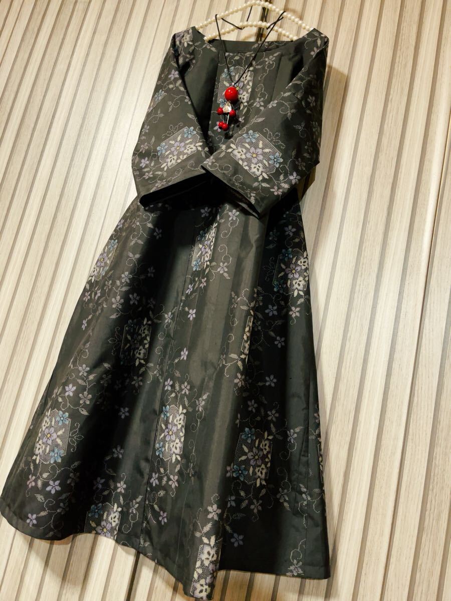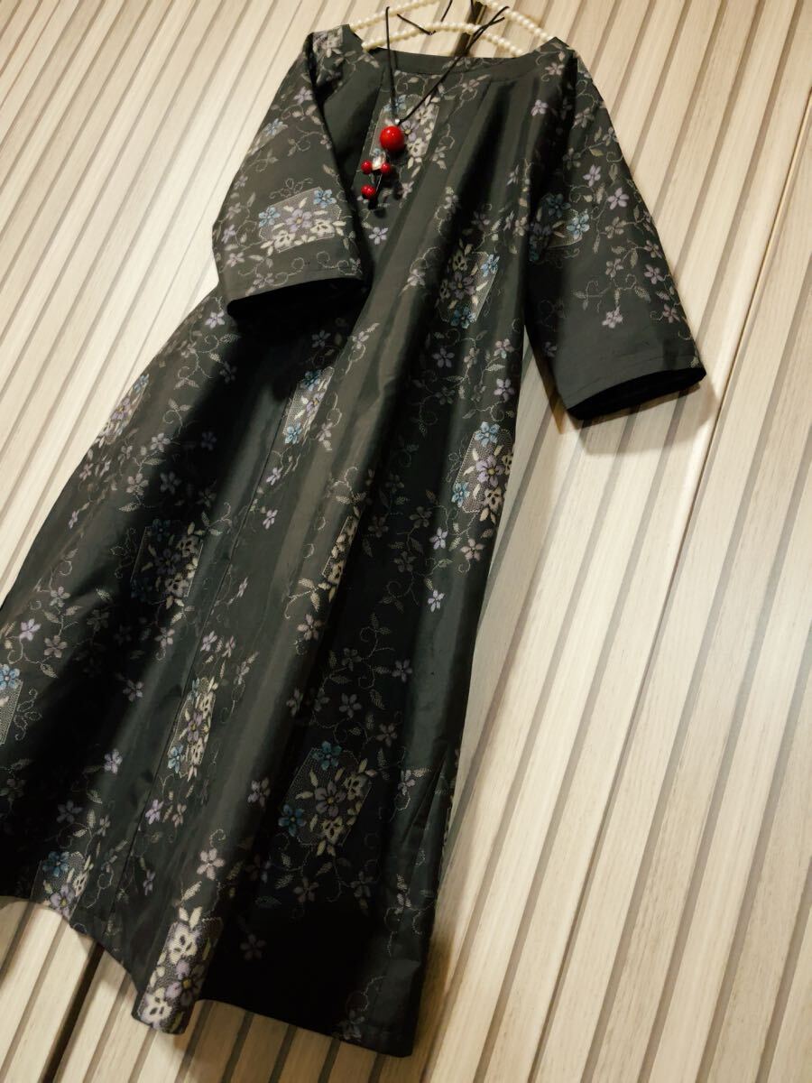 大島紬の着物の解きからシンプルなチュニックワンピースを作りました。