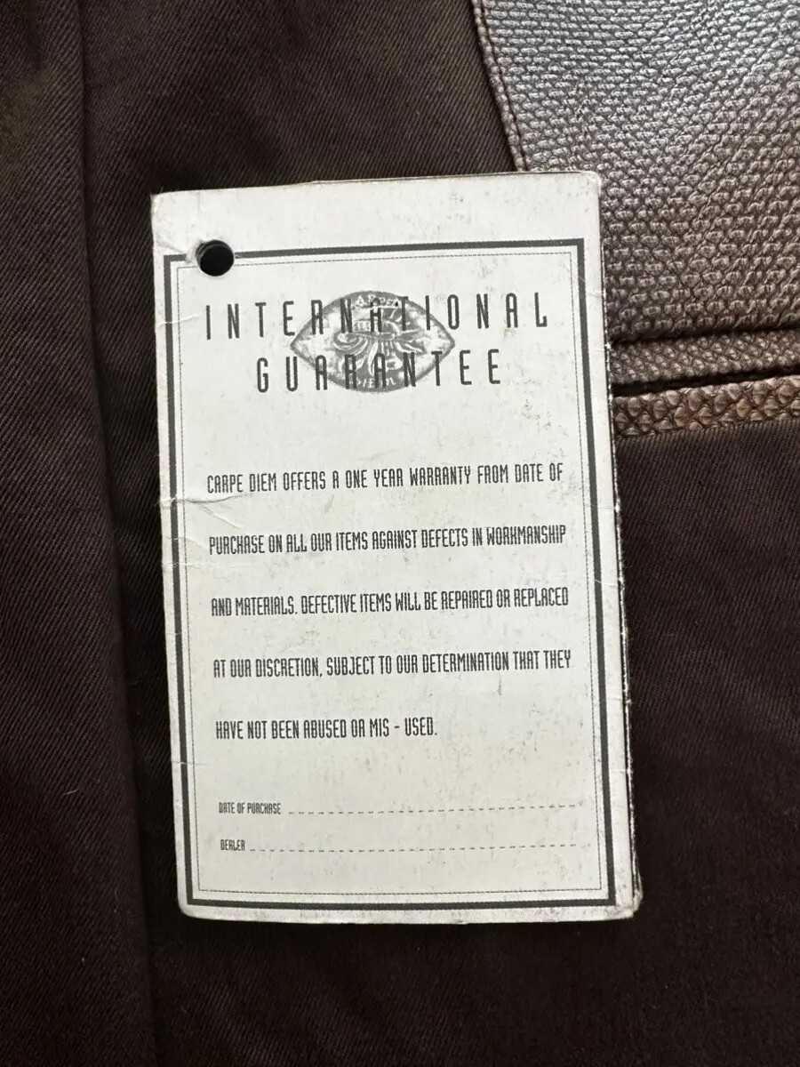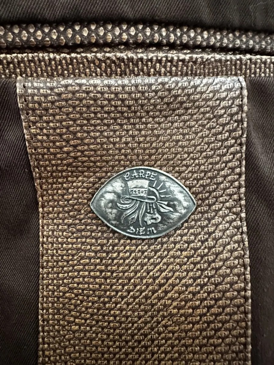 御存知だとは思いますが、現在はマウリツィオ・アルティエリ(Maurizio Altieri)が関わっているカルペディエムの生産は終了しており、入手不可能の品となっております。Altieri氏が関わっていない復活したカルペディエムとは違い、特にこちらは1995-97年頃までのカルペディエム最初期のものとなり、最初期のプロダクトのみに付属していたシルバープレートが付くかなり希少なもので、存在感が別格です。更には紙タグも残ってる上に、レザーがKarungと間違いなく、博物館級のものです。