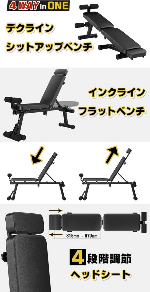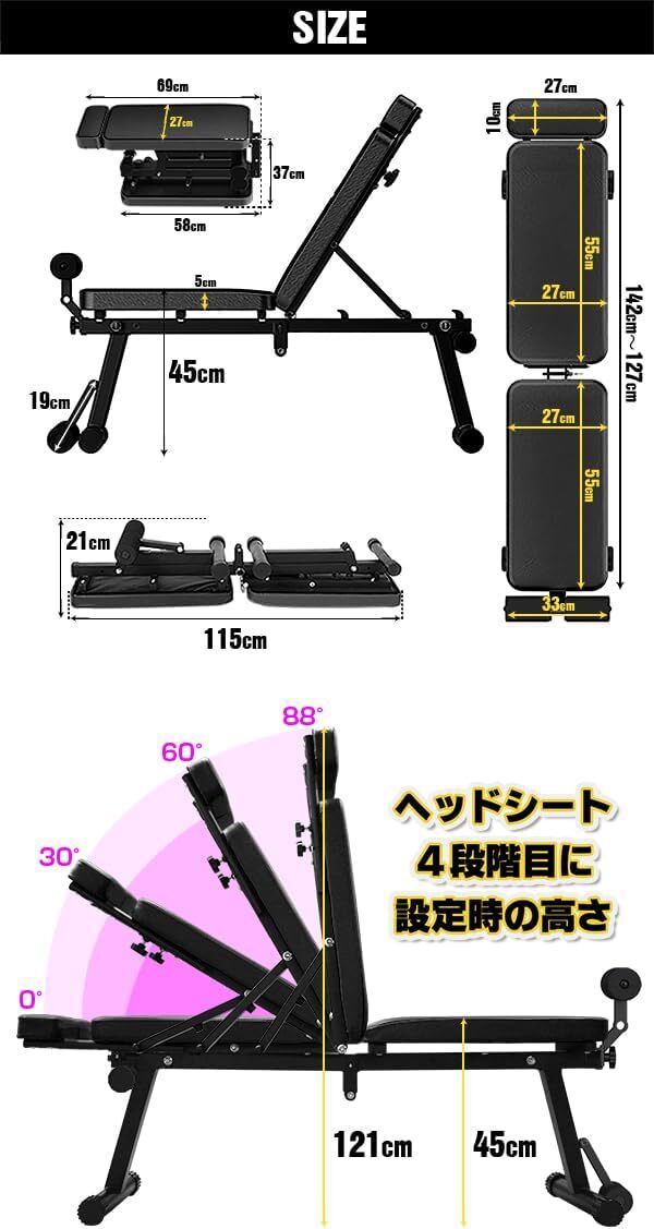 ワサイ トレーニングベンチ フラットベンチ インクラインベンチ【折りたたみ/コンパクト/収納便利】筋トレ 折り畳み ダンベルベンチ