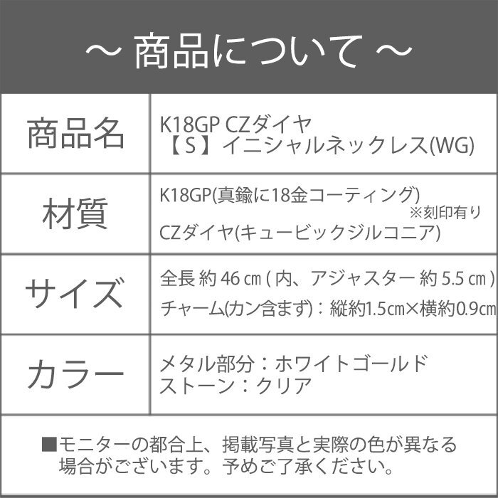 S イニシャル ネックレス レディース シルバー 18金 18kコーティング ホワイトゴールド 英語/ K18GP CZダイヤ 【 S 】イニシャルネックレス