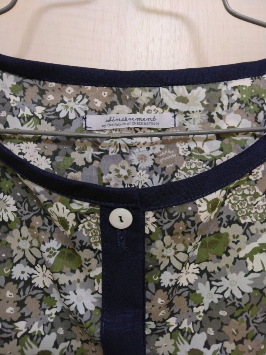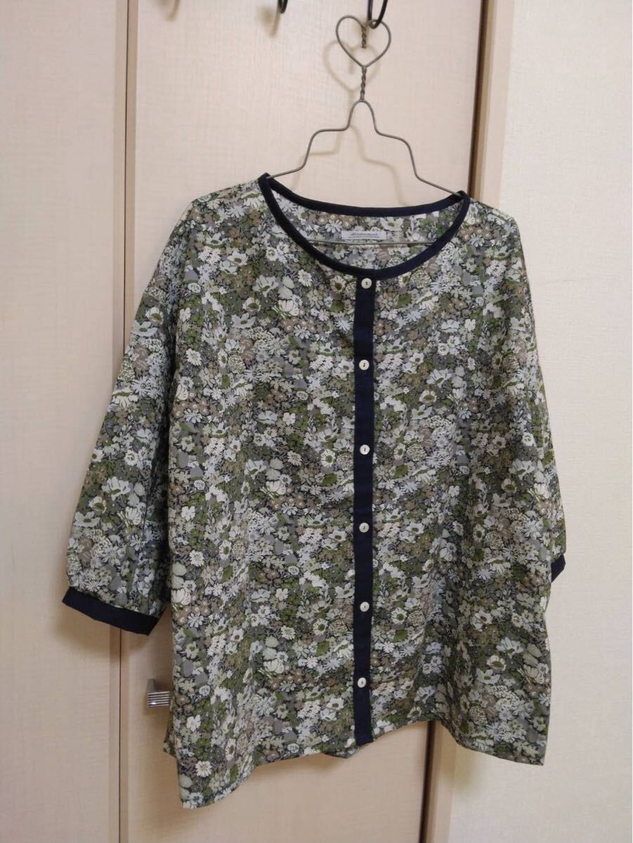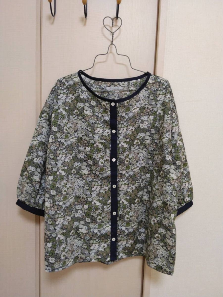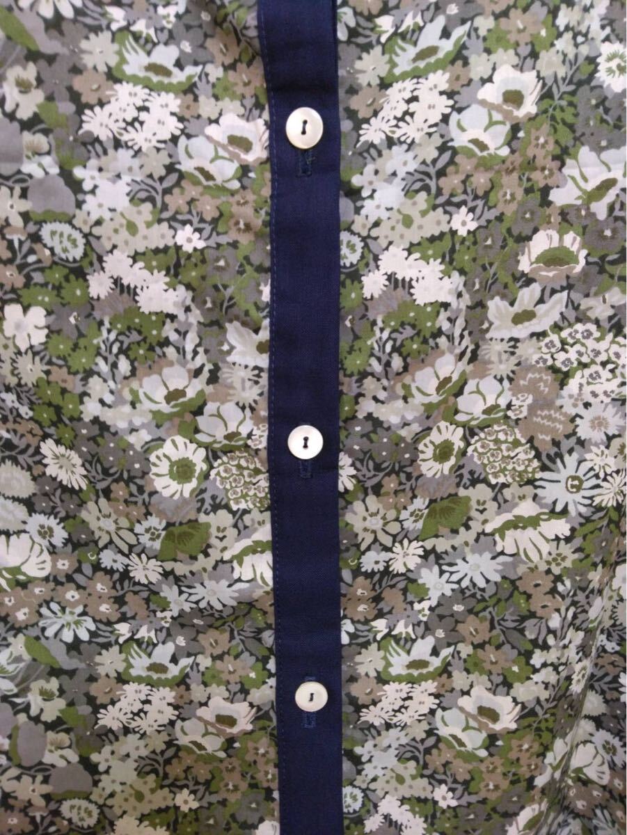 前開きなので、羽織りもののように着ていただく事も出来て便利です。白いシェルボタンを使用。