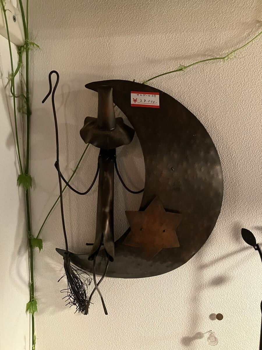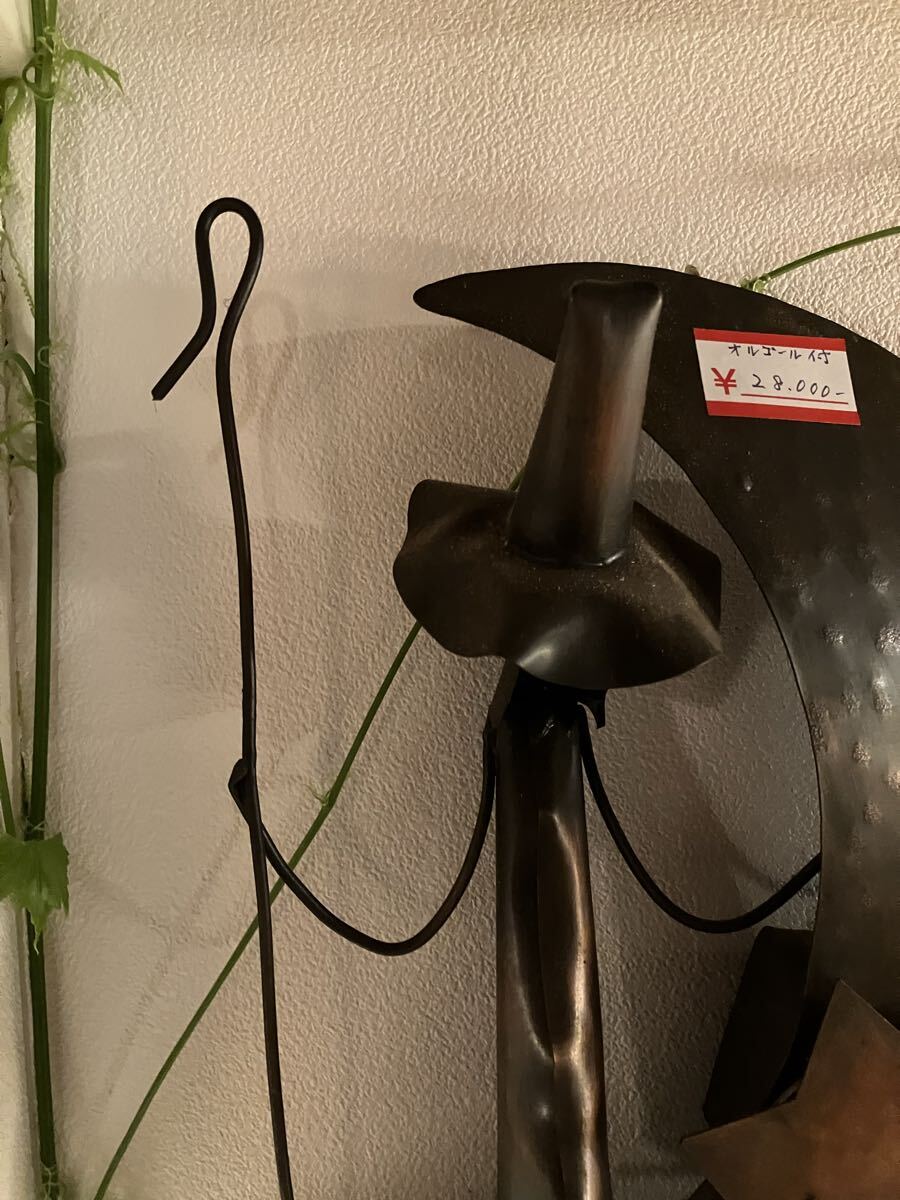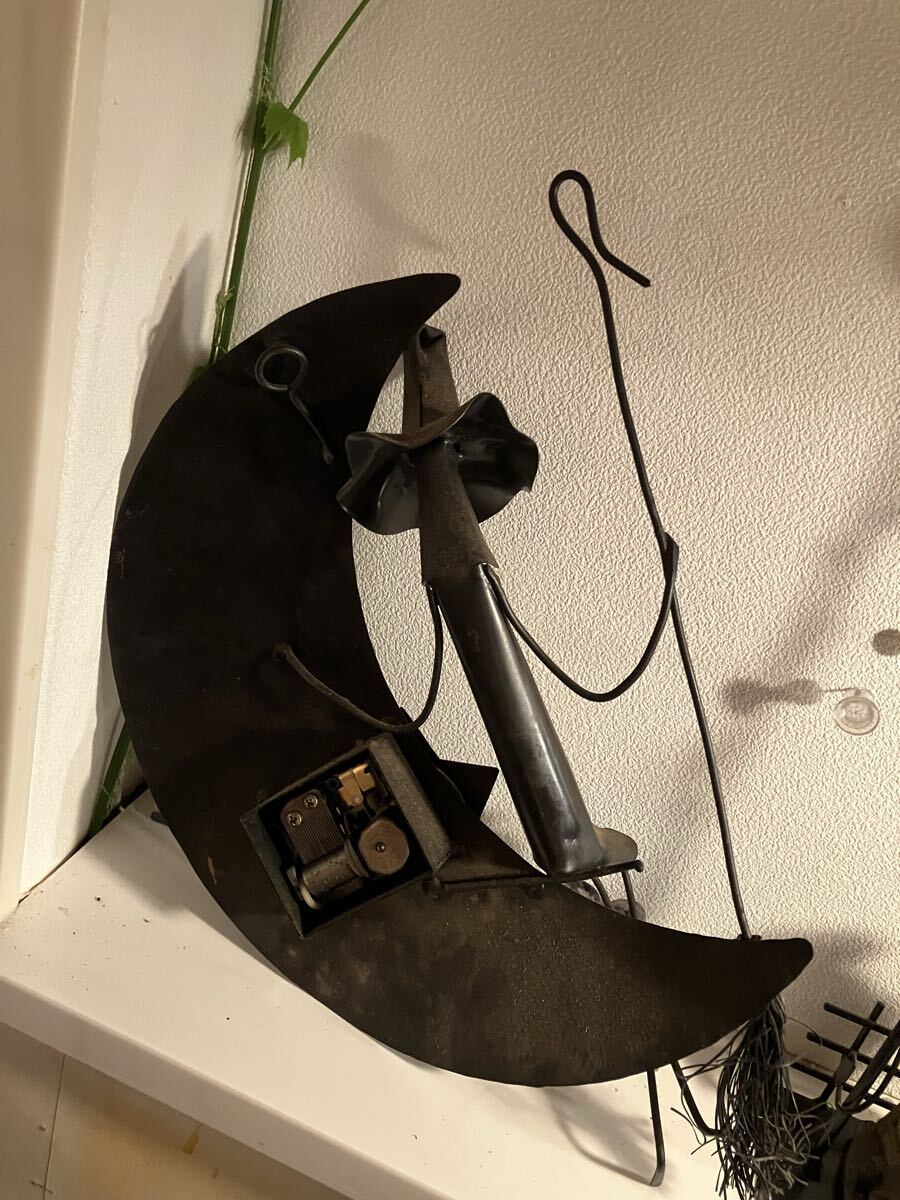 オルゴール付きの魔女の宅急便?真鍮かブリキか判断つきません、壁紙等にぶら下げる構造です、