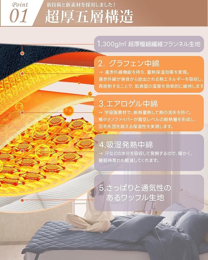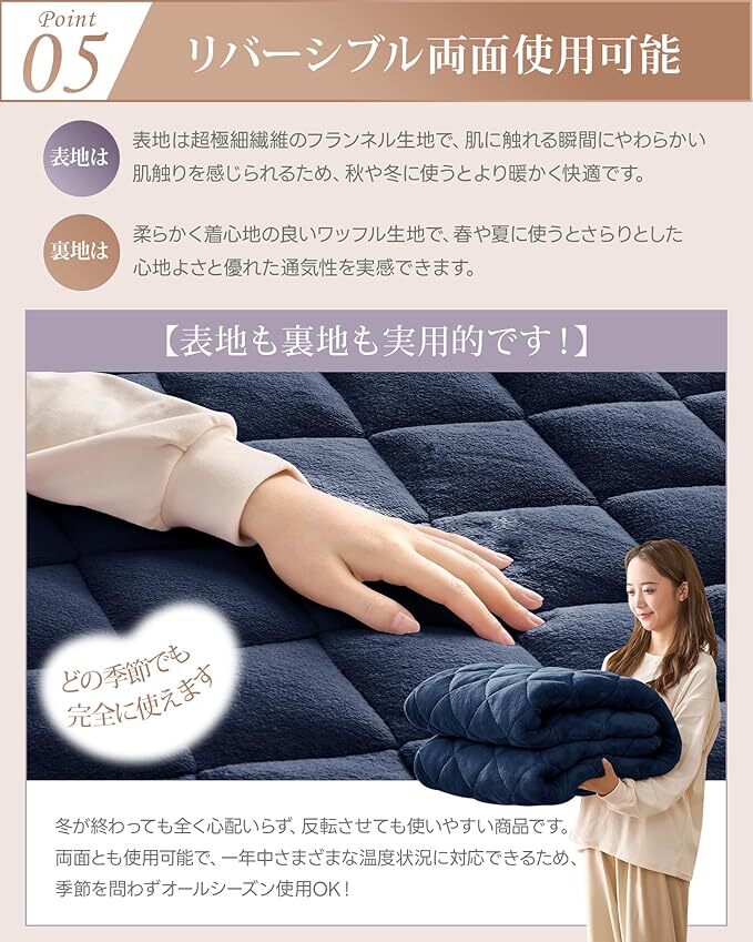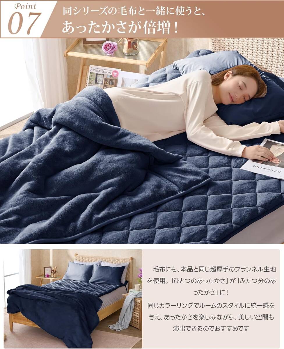 Amazon | fuwawa 敷きパッド シングル 冬用 厚手 超厚五層構造 グラフェン中綿 エアロゲル中綿 300g/㎡超厚ネコタッチ生地 あったか敷きパッド 発熱蓄熱素材 リバーシブルパッドシーツ兼用 ゴム付き 抗菌防臭防ダニ 静電抑制 軽量 洗えるもうふ 毛抜けない 100×200cm ネイビー