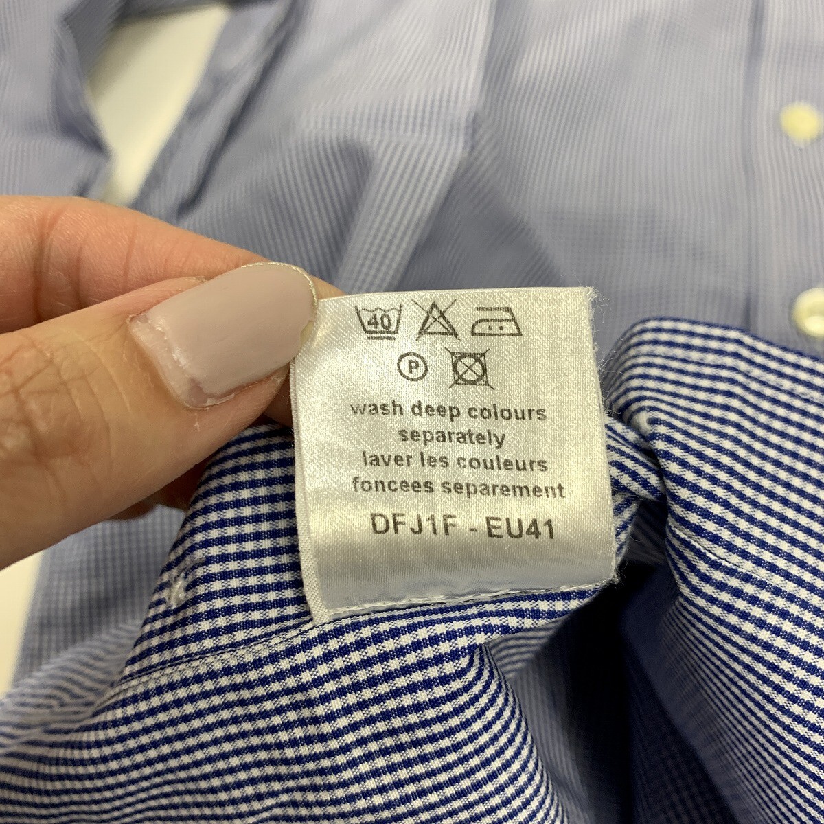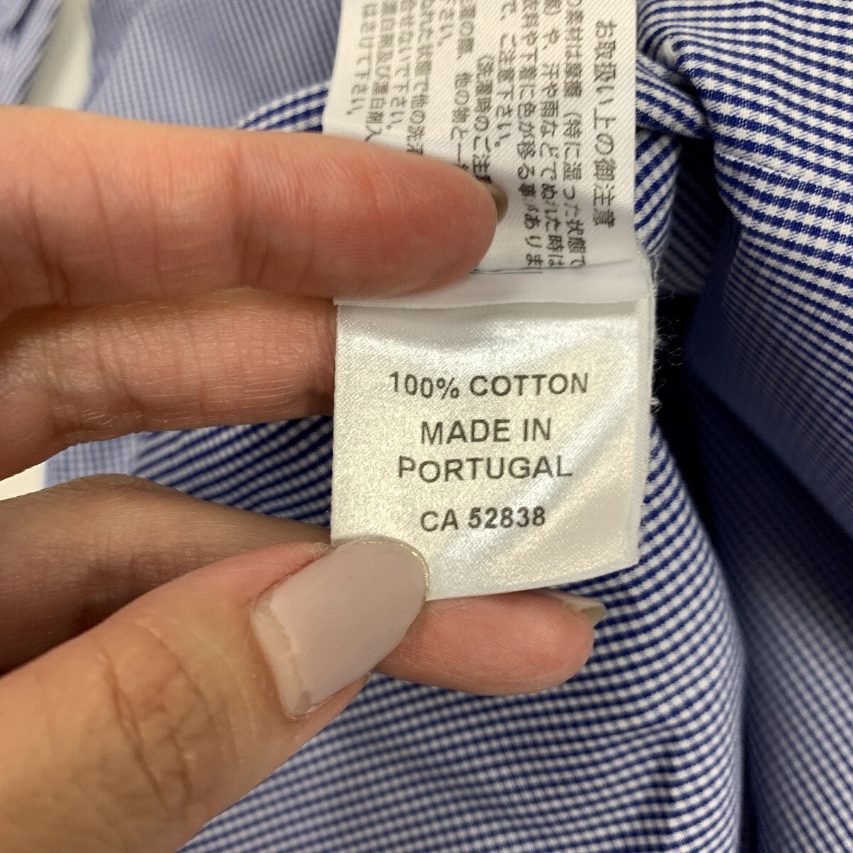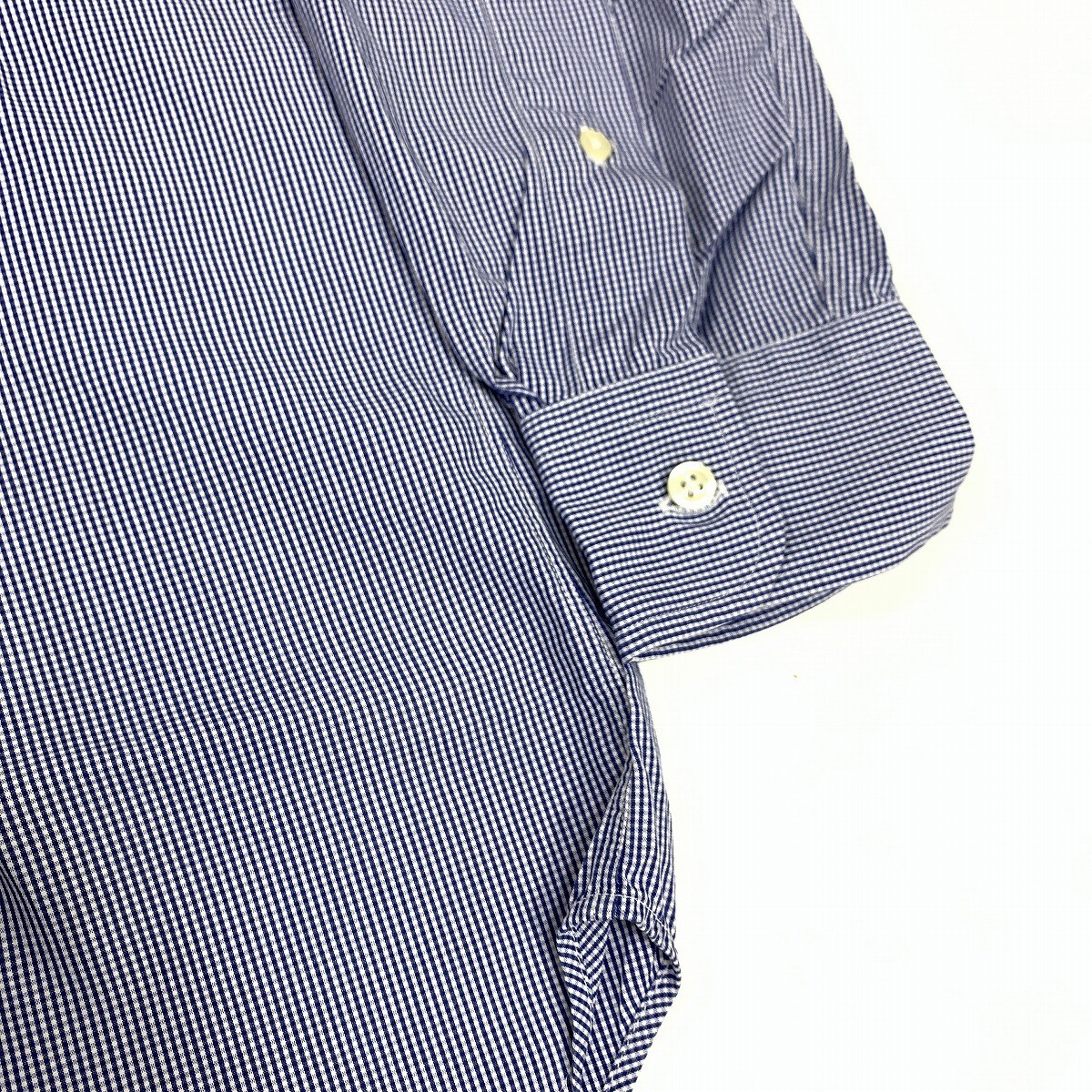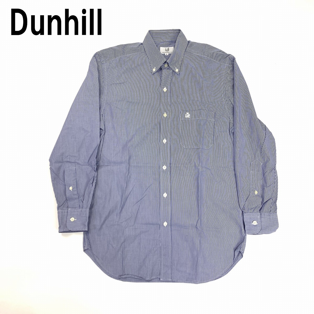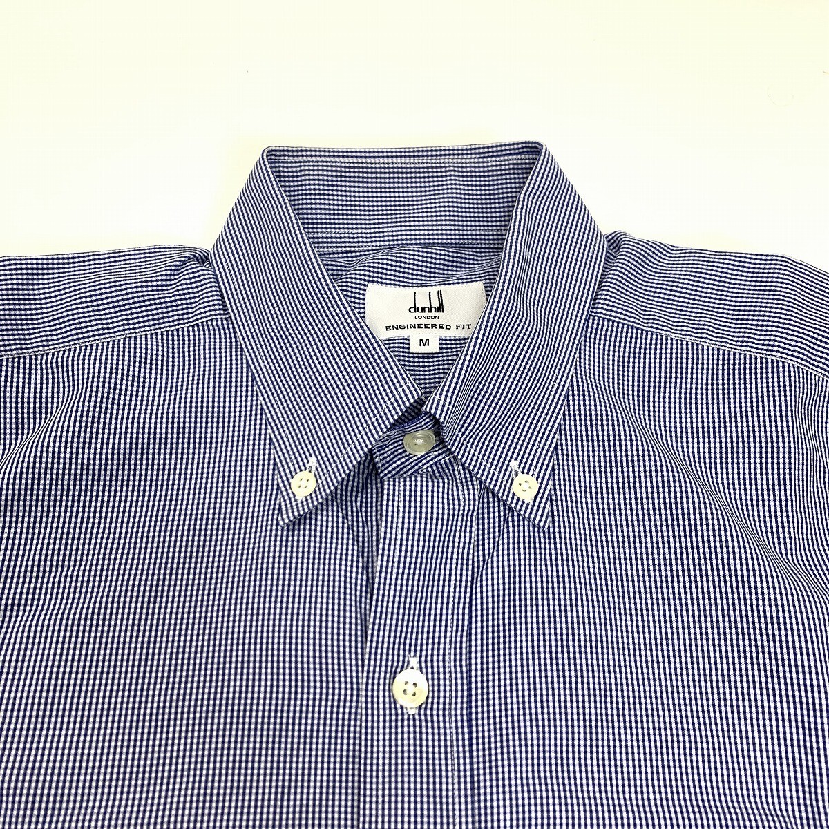Dunhill ダンヒル 長袖シャツ ワイシャツ 綿 コットン ボタンダウン ギンガムチェック 青 紺 ブルー ネイビー M YC1128