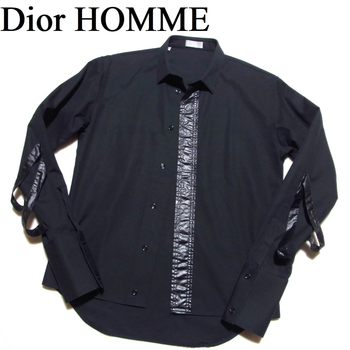 ★商品名…03AW ラスター期 Dior HOMME ディオールオム テーピング デザイン シャツ 38 黒 ブラック 3HH1057821 エディスリマン アーカイブ