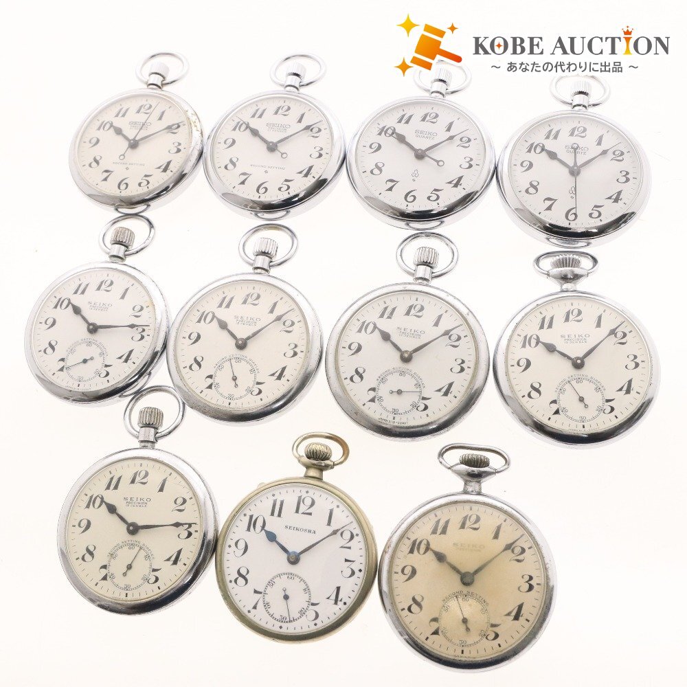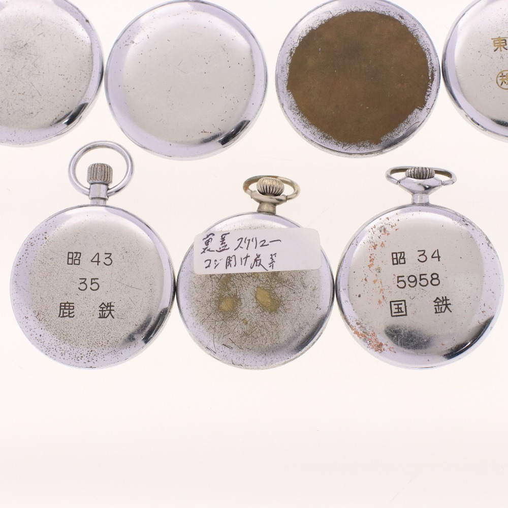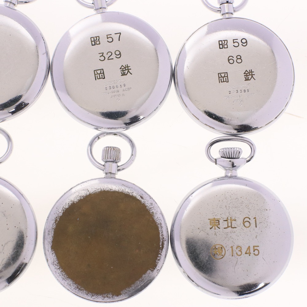 SEIKO セイコー 懐中時計 11点セット まとめ売り 9119-0020 7550-0010 6110-0010 東北 岡鉄 鹿鉄 等 スモセコ 新タイプ シルバー 付属品:写真のものが全てです 総重量:978g ⇒ アパレル商品のカラー基準・採寸方法・海外サイズ換算表 (参考)トルソー(マネキン)は男女ともMサイズです。 | ||||||||||||||||