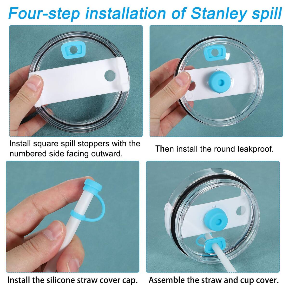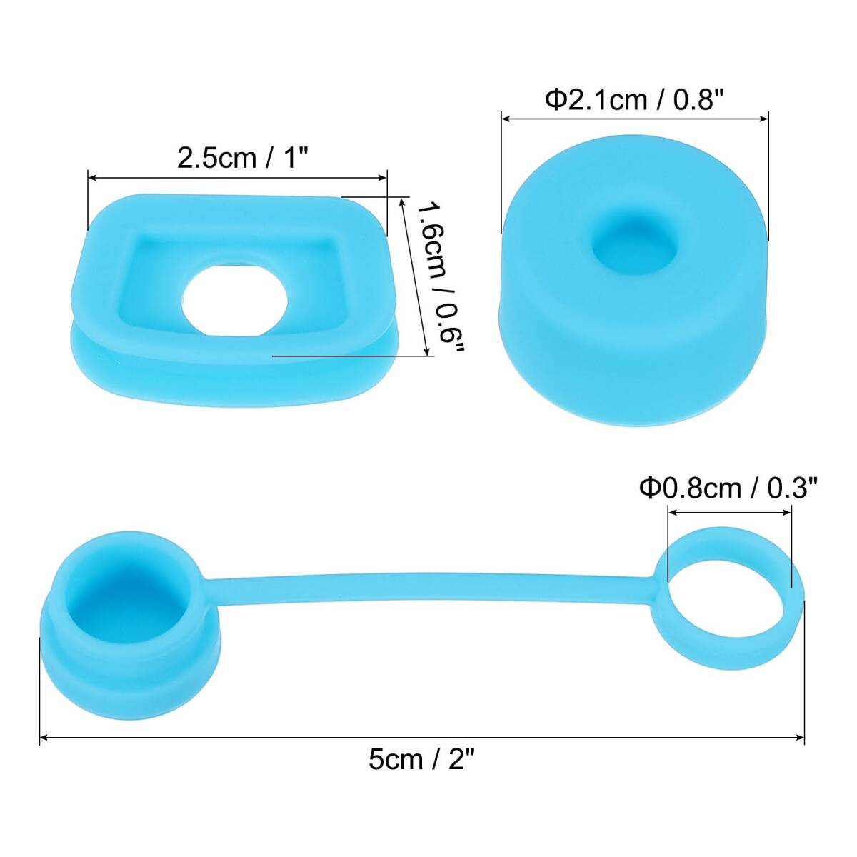 カラー:ブルー;ストローキャップサイズ:0.8x5cm / 0.3x2"(内径×長さ);丸い止めの直径:2.1cm / 0.8";四角いこぼれ止めサイズ:2.5x1.6cm / 1x0.6";梱包リスト:カップこぼれ止めセット1セット(ストローカバーキャップ2個、四角いこぼれ止め2個、丸い漏れ止め2個)