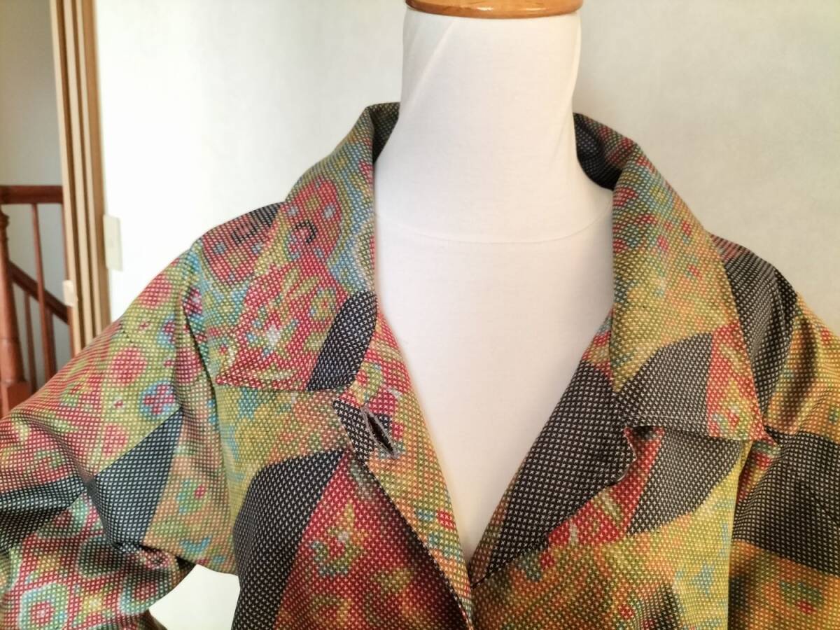 アクセスいただきありがとうございます 手作りの本などを参考にしていますがアレンジを加え パターンを引き直したオリジナルハンドメイド作品です サイズは平置きにて計測しています 着丈 108cm 身幅 56cm 肩幅 41.5cm 袖丈 51cm 袖口幅15.5cm 裾幅 90cm アームホール(肩~脇下部分)25cm 裏地なし、左右シームポケットです 平置きにて計測しております サイズの多少の誤差はご了承ください お手持ちの伸縮性のないお洋服でのサイズ確認をお願いします ワンピースのお直しは行っておりません 素材 正絹 紬(仕入れ先情報) 仕入れ先情報を元に掲載しておりますが、画像にて判断をお願いします 色落ち・色移りする場合がありますのでドライクリーニングでお願いします ご確認事項 古布を使用している為、折跡・織りムラ・織り傷・毛羽立ちがございます 気をつけてみてはいますが、シミ等見落としがあるかもしれません 一点一点心を込めて作っていますが、ハンドメイド品であることを ご理解いただける方よろしくお願いします モニターにより色味が違って見える場合があります ご了承下さい タイトルに記載の物以外は出品物に含まれません 素材・産地に関しましては仕入れ先情報を元に記載しております 素材・産地を明確に判断できるプロではありません 新規で評価が0の方はお手数ですが質問欄よりご連絡の上、 入札をお願いします ご連絡がないまま入札をされた場合、入札を取り消します 落札後は24時間以内のご連絡とお支払いをお願いします いたずら入札や初回取引のトラブルを防ぐためにご協力をお願いします 落札からお受け取りまでを五日間で対応していただける方、お願いします お支払いはかんたん決済のみです 評価は不要な方もおられるため、いただいた方のみ評価を入れて おります | ||