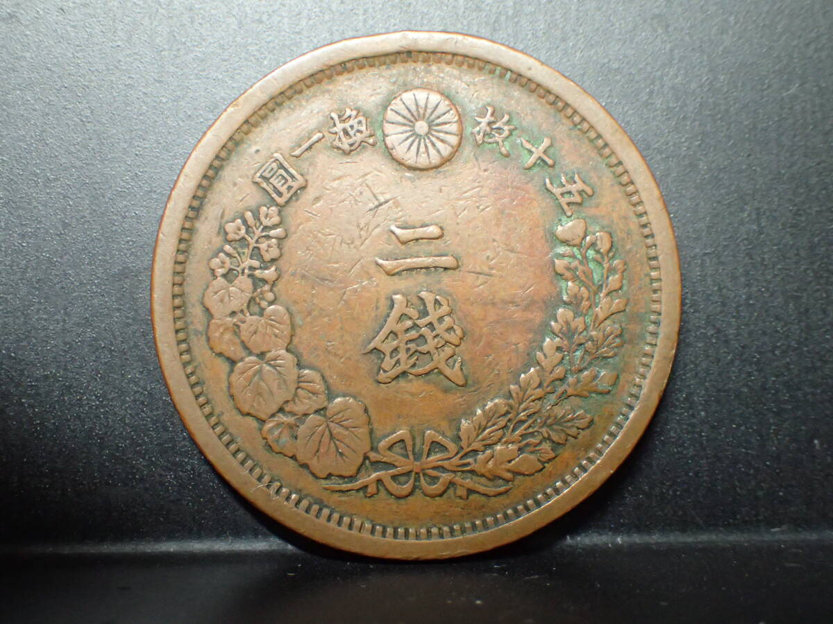 言わずと知れた、2銭銅貨の有名最難獲品手変わり品です、かなりの珍品です。