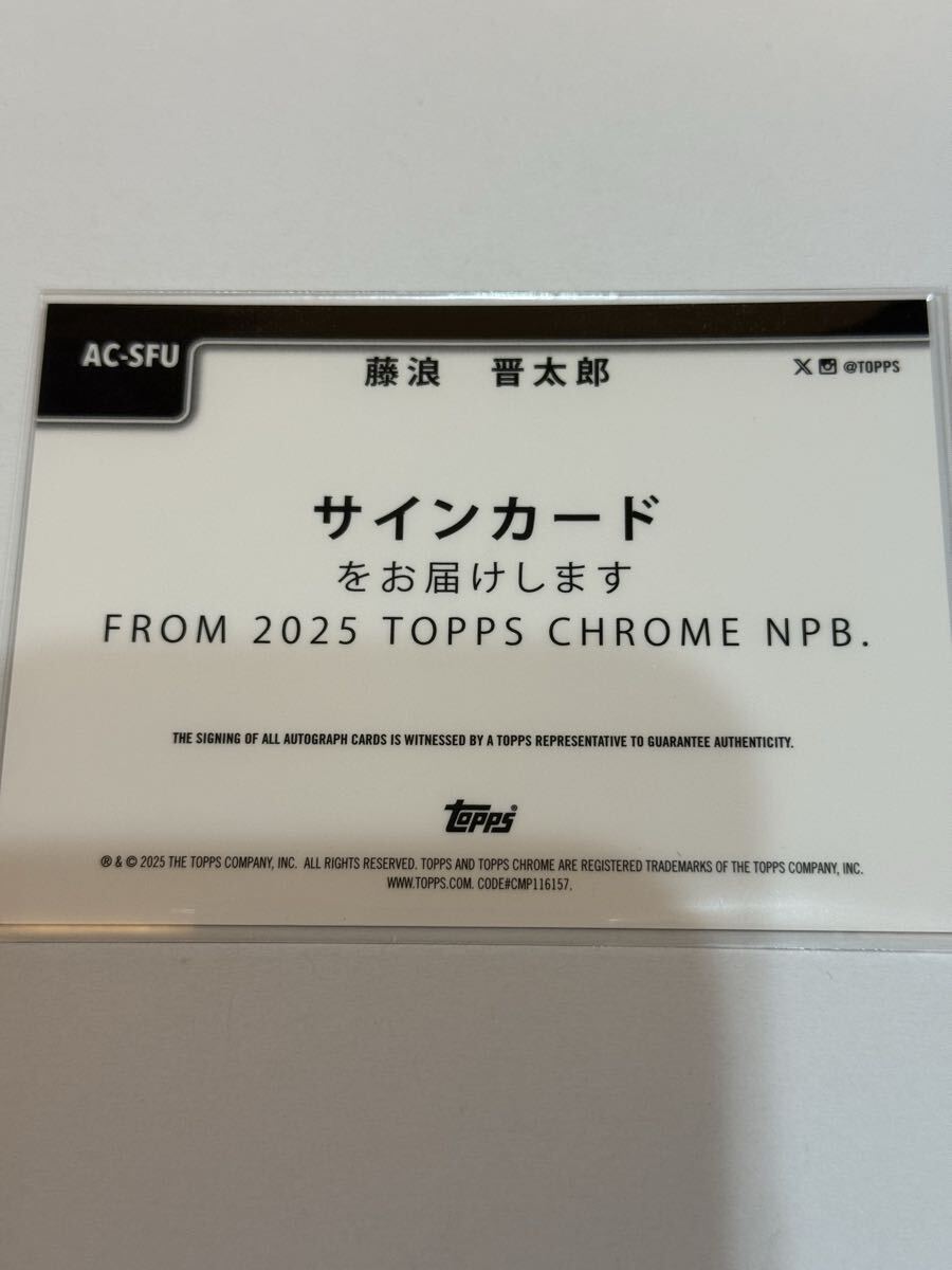 最新 /50 2025 Topps Chrome 藤浪晋太郎 直筆サイン 阪神タイガース Auto