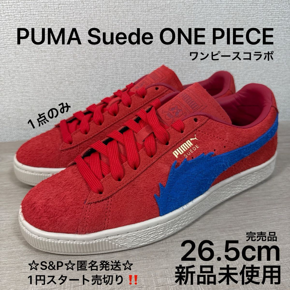 1円スタート売切り 新品未使用 26.5cm 完売品 PUMA プーマ ワンピース ONE PIECE SUEDE スエード 396520 スニーカー レッド 稀少