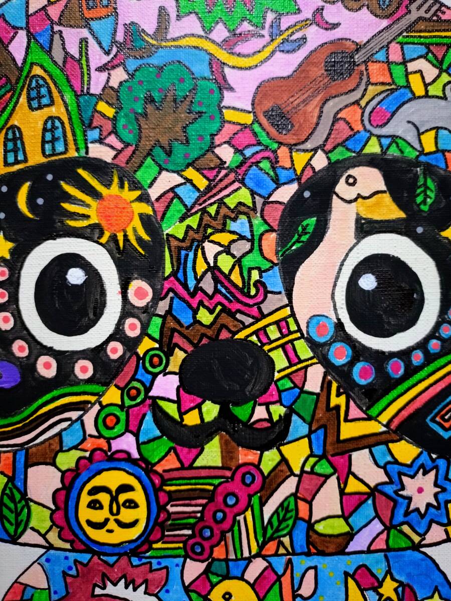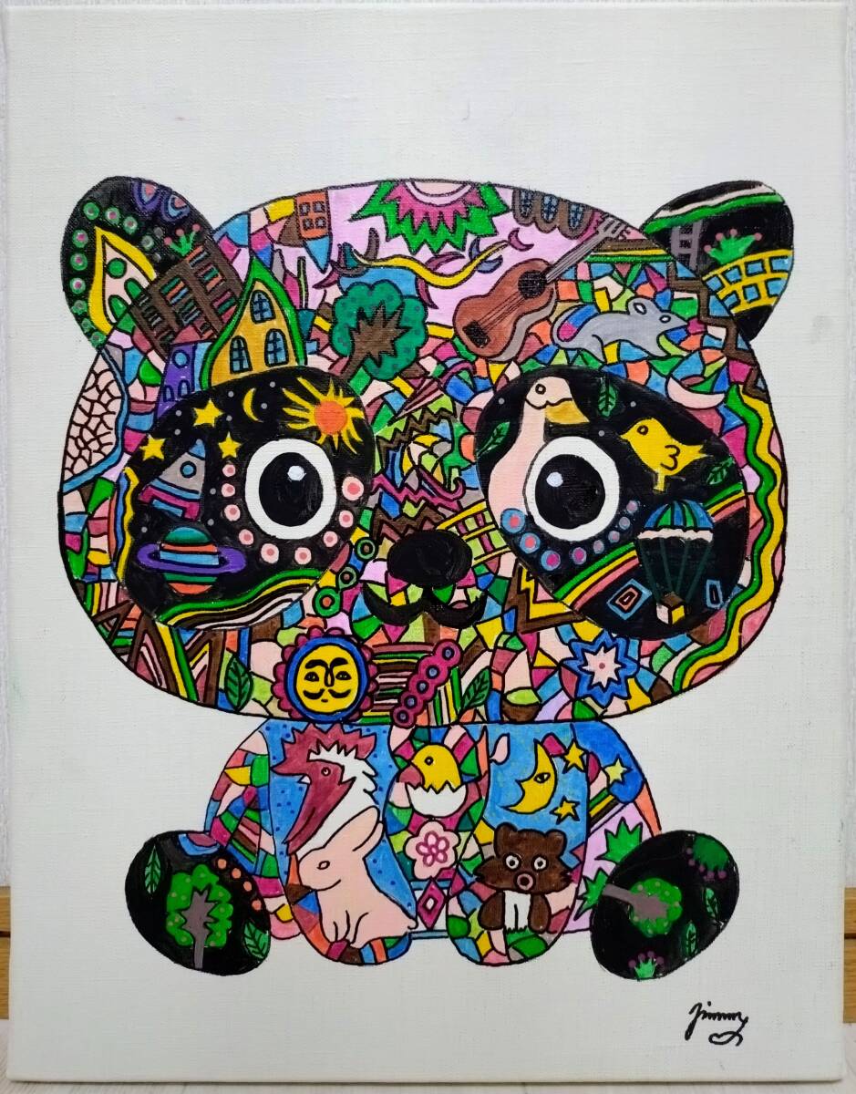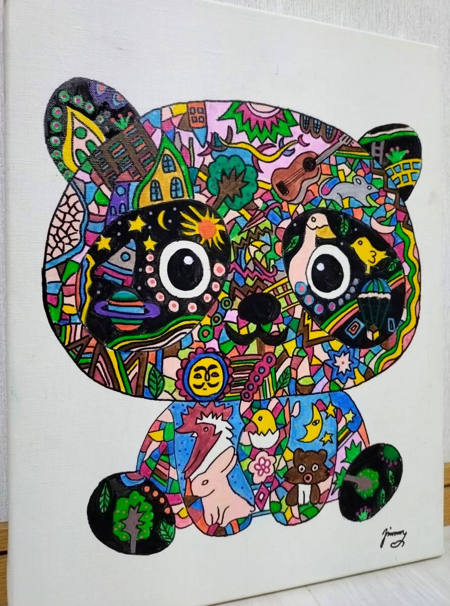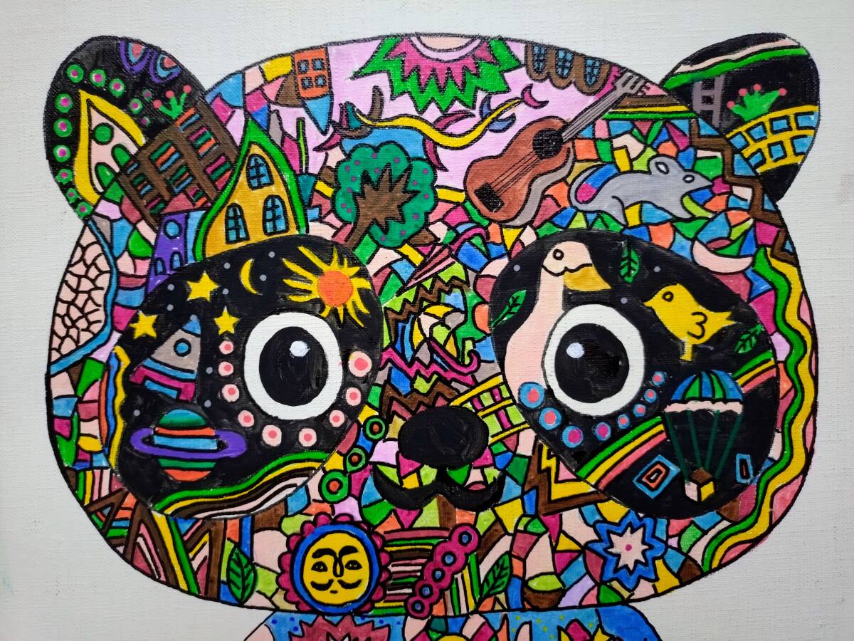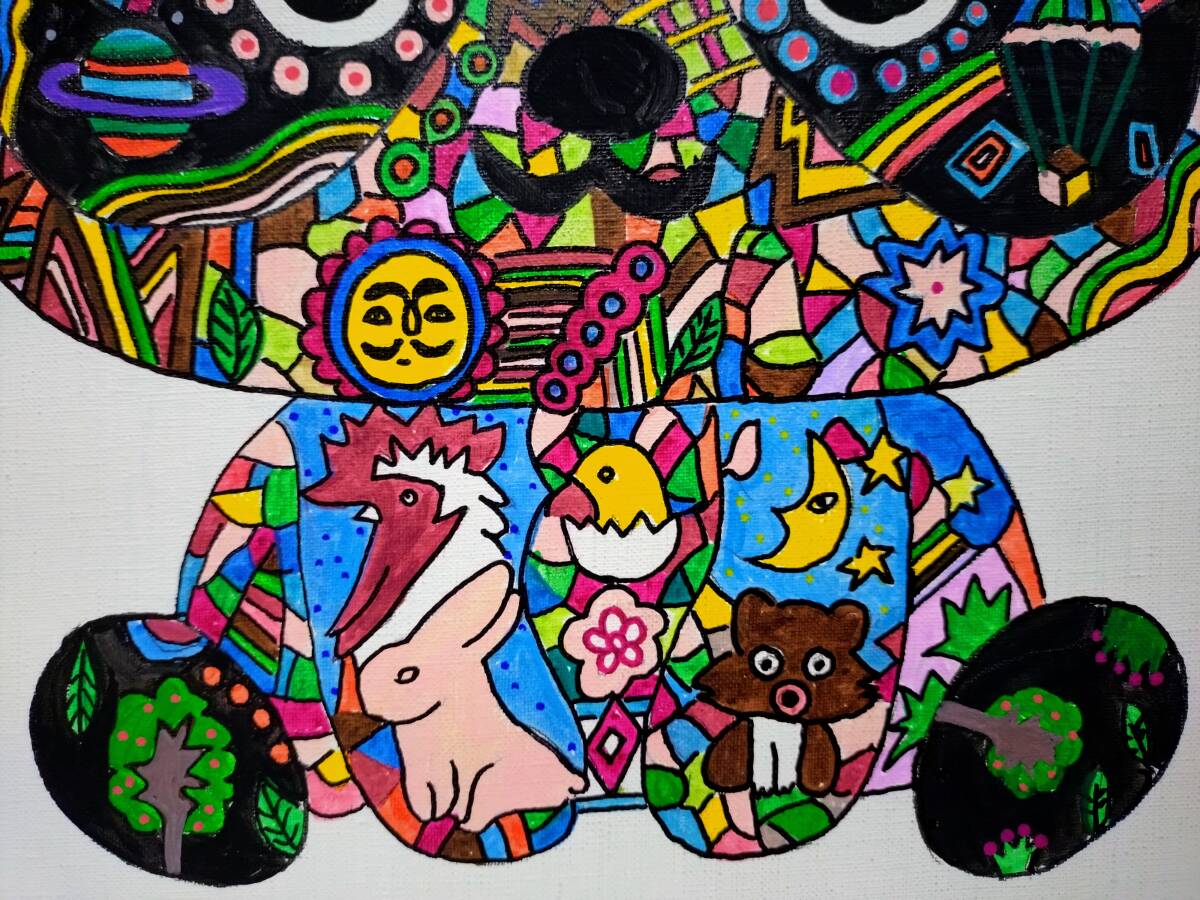 『独創的な感性でパンダを色彩豊かに細かく丁寧に描いた作品です