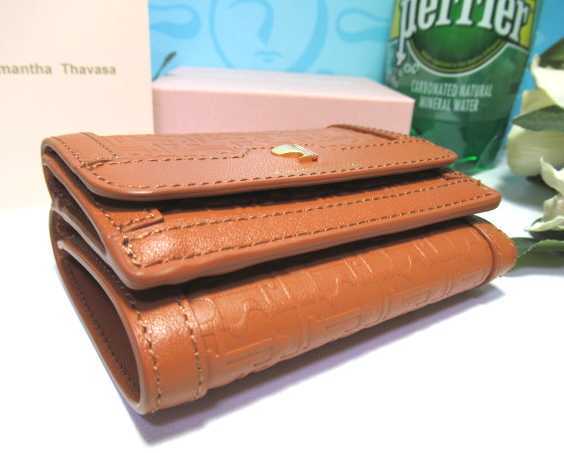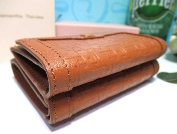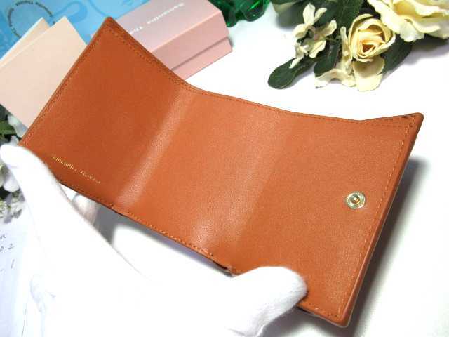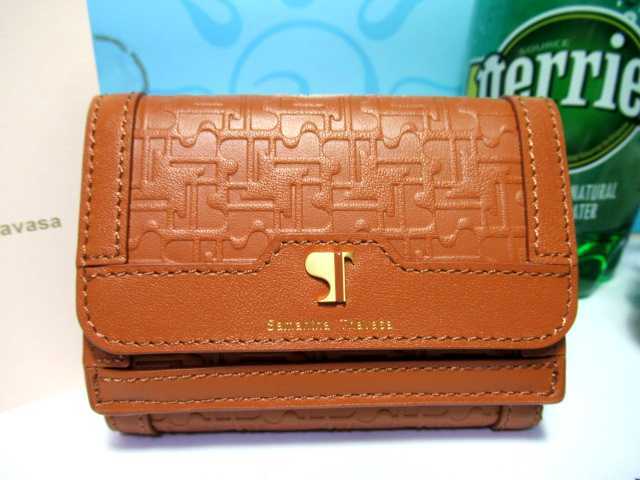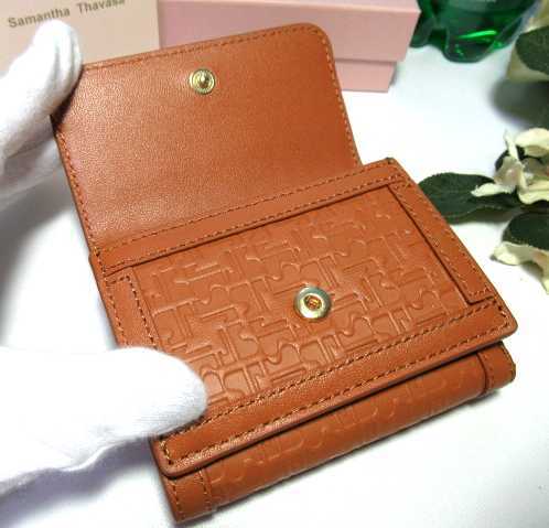 送料無料 52%引 サマンサタバサ ST ロゴ エンブレム付 型押 牛革 ミニ財布 三つ折り財布 折財布 キャメル 新品 証明書付 ユニセックス