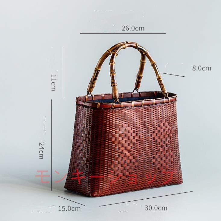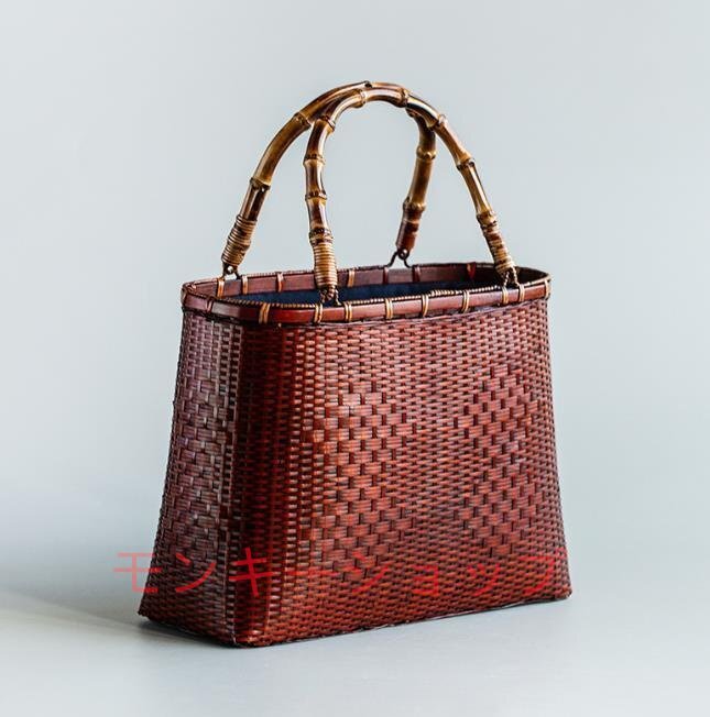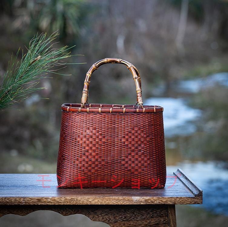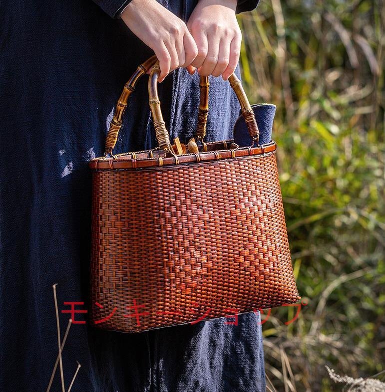 新品 夏最適 竹編み上げ カゴバック  手作りバスケット お洒落買い物カゴ 収納バッグ 花火用可愛いバック