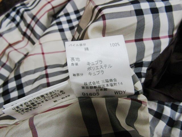 ★バーバリー BURBERRY★レディース テーラードデザイン ベルベットジャケット 裏ノバチェック★R71005033C | |