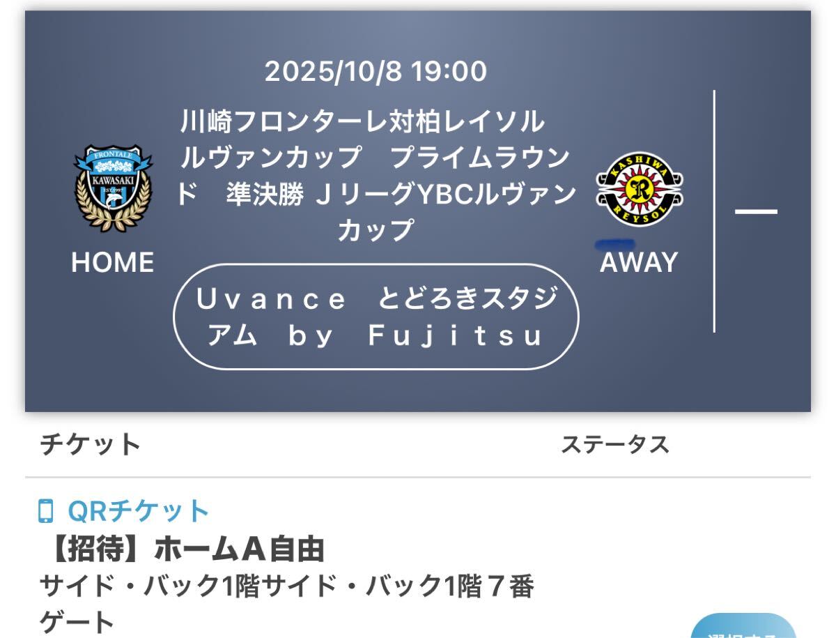 JリーグアプリからQR発見できる方のみでよろしくお願いします。入金確認後にURLをお送りします。