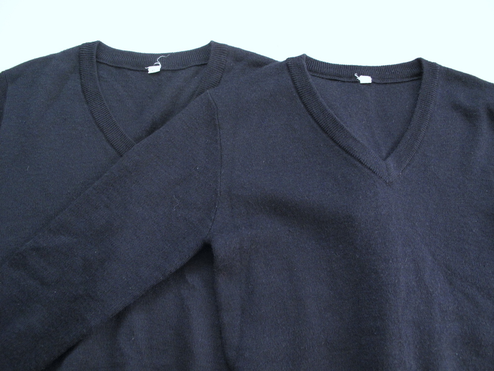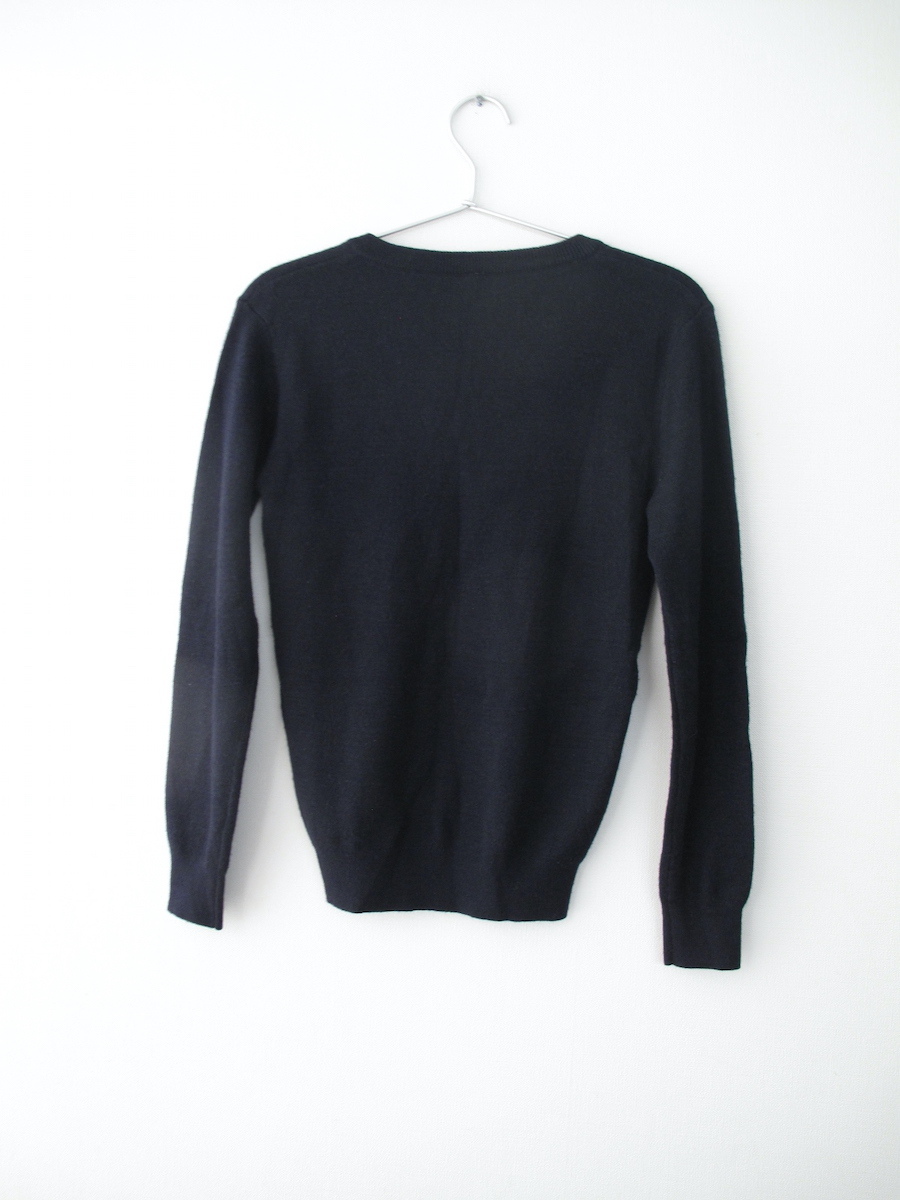 商品名*** 男の子 Vネック濃紺ニット 2枚 150 状態***中古 説明*** イオン トップバリュ 長袖のVネックニットです。 濃紺。 同じようなデザインが2枚です。 制服のようなシンプルなデザインです。 何度か使用した中古ですので 着用感なんとなく有ります。 目立つような汚れはございません。 内側のタグを一部カットしています。 畳んで保管・梱包しますので 畳みシワはご容赦ください。 サイズ:150 実寸 平置 約 肩幅 42cm 袖丈 55cm 脇下の身幅 41cm 着丈 57cm 素材: アクリル、ウール |