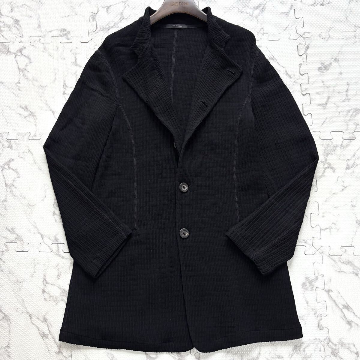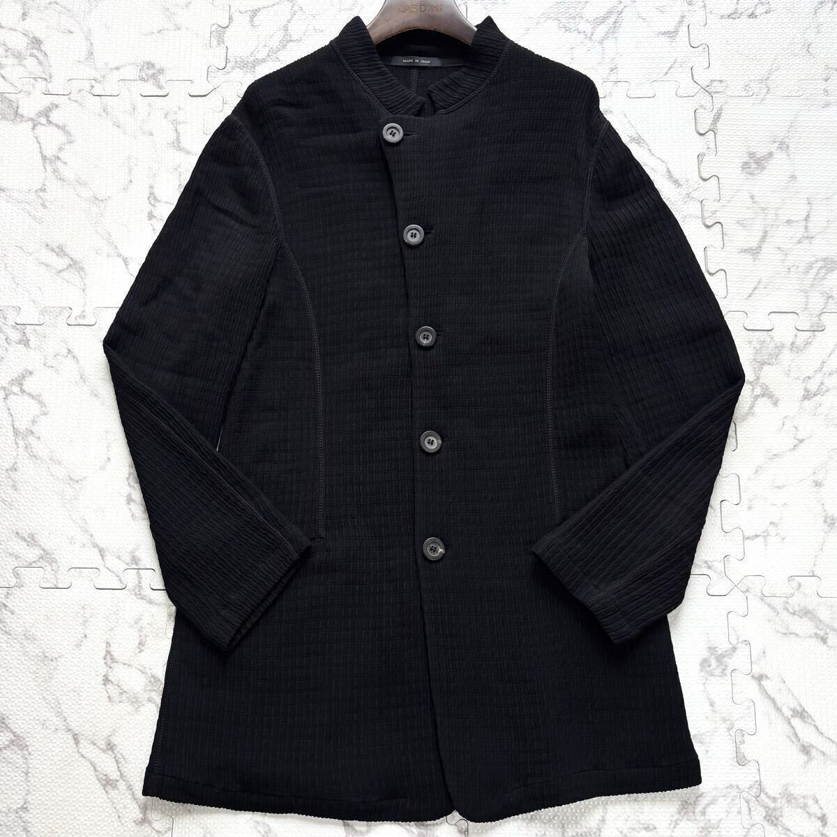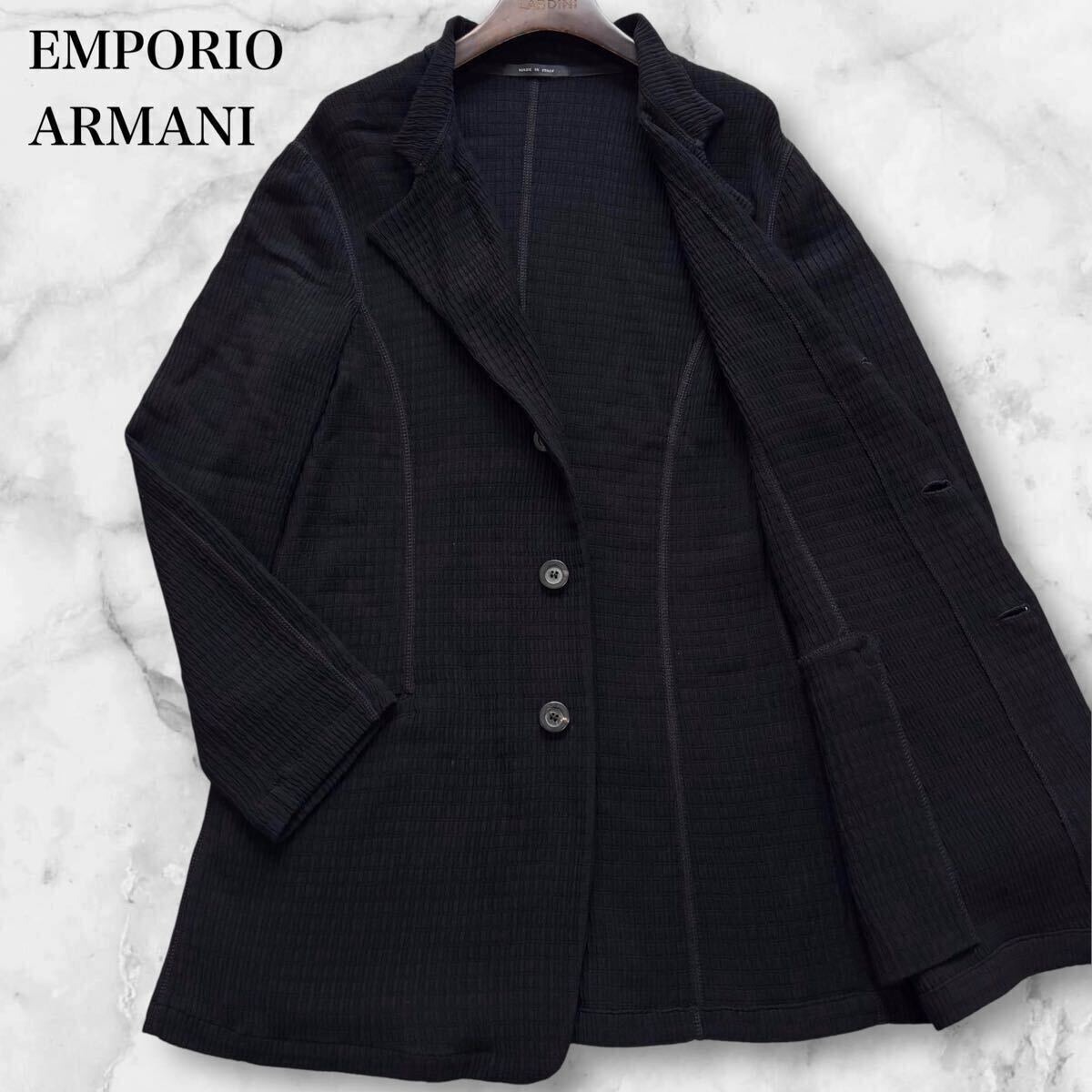 美品/XL相当●EMPORIO ARMANI エンポリオ アルマーニ ニット テーラードジャケット 2way スタンドカラー カーディガン ブラック 黒 size52