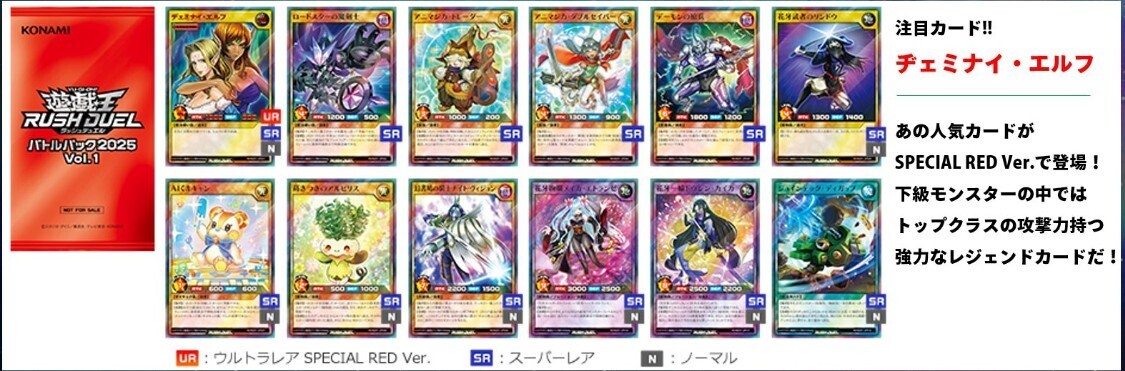 8パック 帯留め 新品未開封 遊戯王ラッシュデュエル バトルパック 2025 Vol.1 4月~6月 RD/B251 ヂェミナイ・エルフ SPECIAL RED Ver.