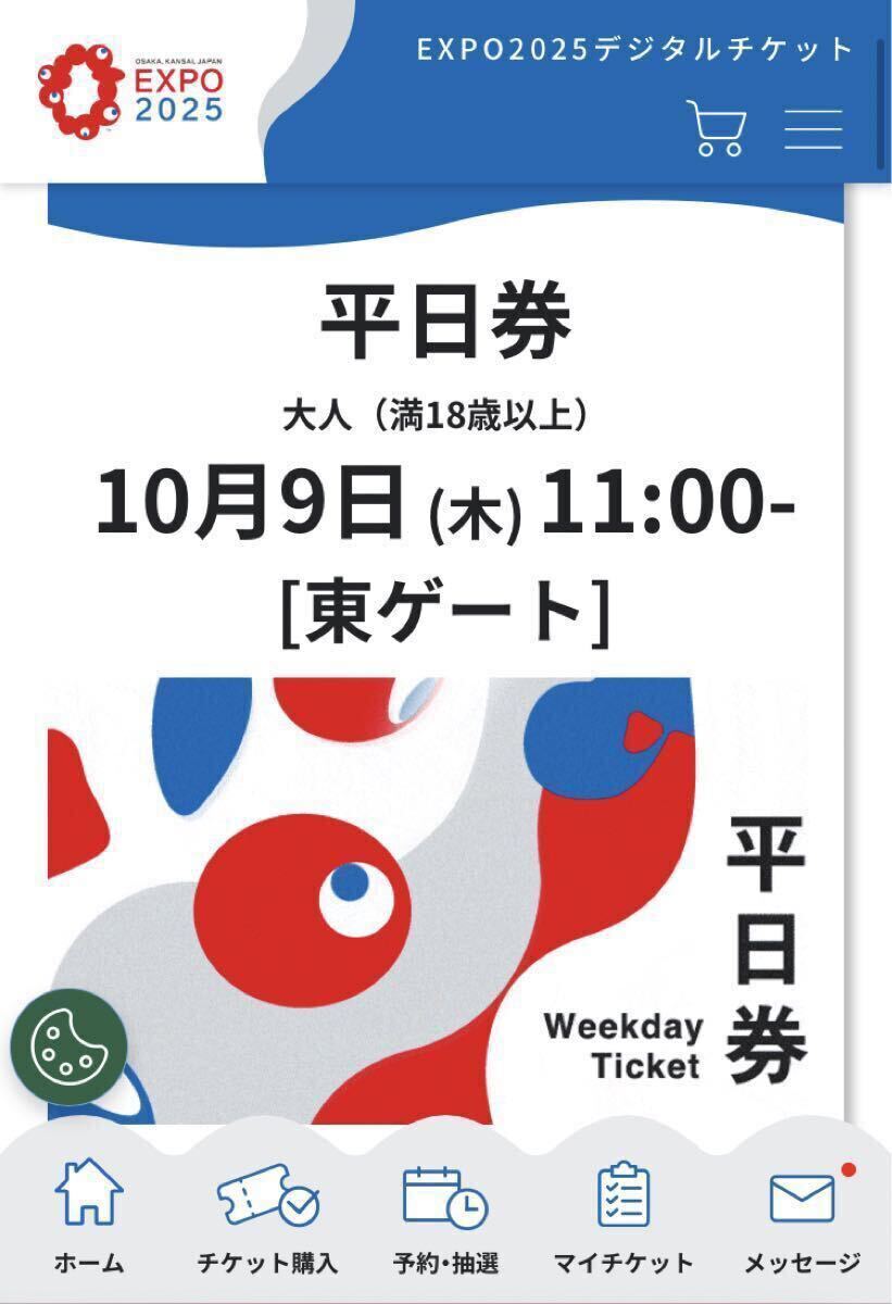・2025年10月9日(木) 東ゲート 11時〜 大人1枚