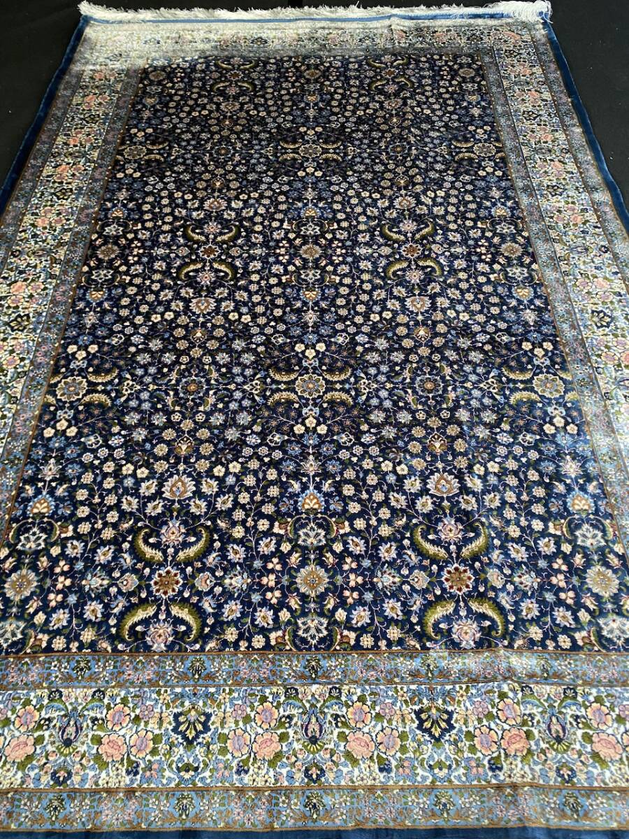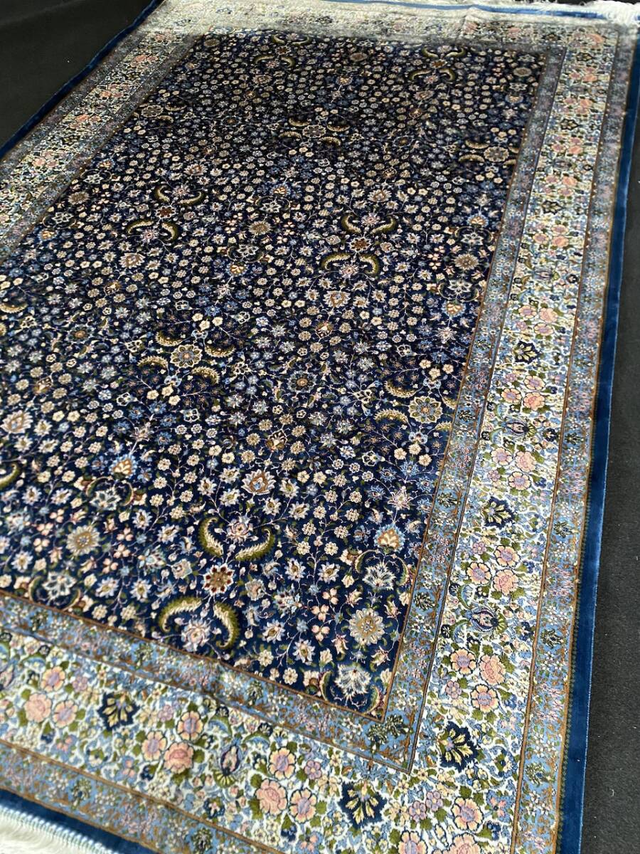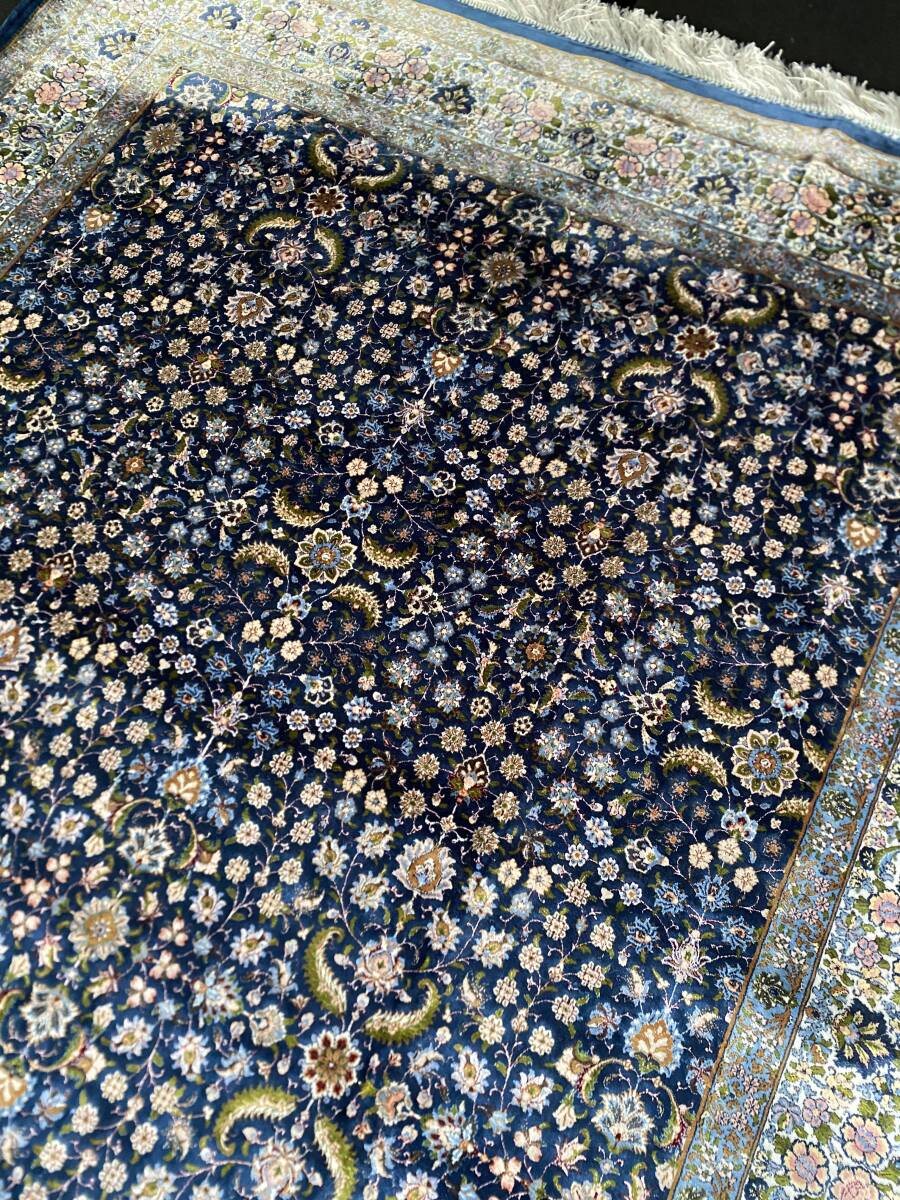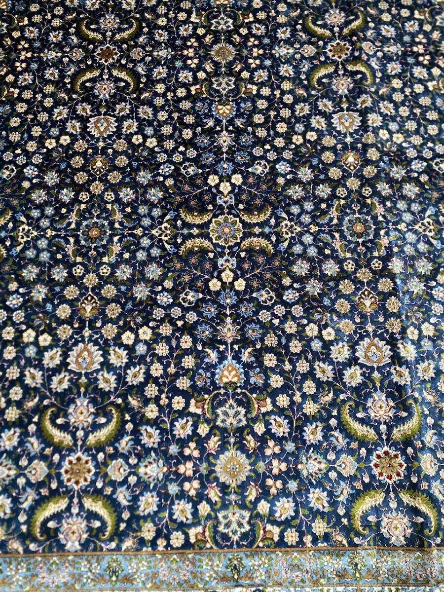 クム絨毯の歴史は1930年頃からと浅く、最初はウール絨毯を、後にシルク絨毯を織るようになりました。絹の産地としても有名なクムで、現在作られるほとんどの絨毯は100%シルク製です。