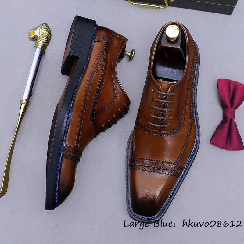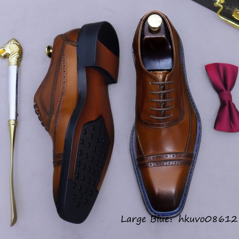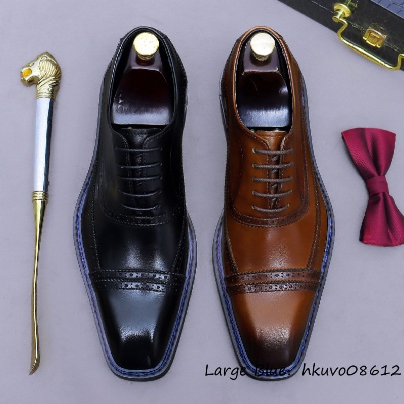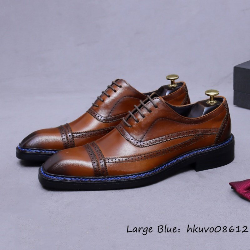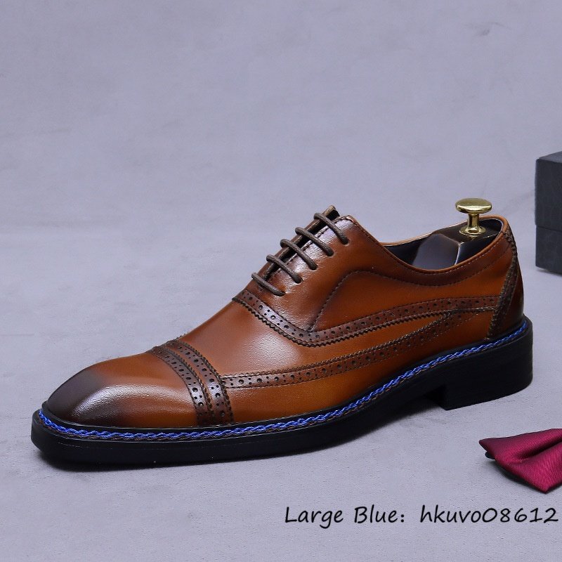 超希少*定価9万 ビジネスシューズ メンズ 本革 最高級 職人手作り 彫り レザーシューズ 革靴 牛革 紳士靴 フォーマル 新品 ブラウン 25.0cm