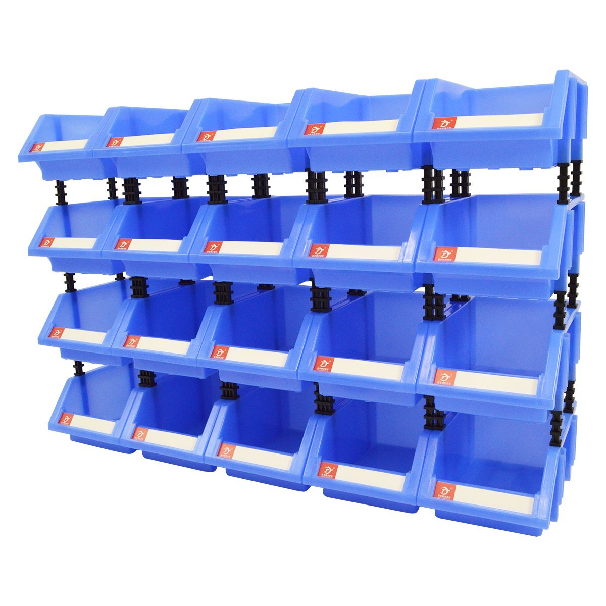 20個セット Sサイズ 連結 パーツ ボックス 青 ブルー 名札付 ネジ ビス 小物 在庫 精密 部品 整理 収納 保管 コンテナ ケース