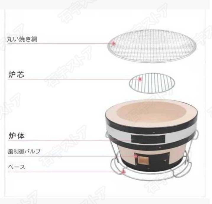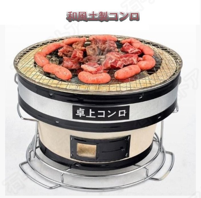 珪藻土丸型七輪 セラミック火鉢 炭火焼きコンロ 室内 焼き網つき テーブルバーベキューグリル 屋外 キャンプ shw302