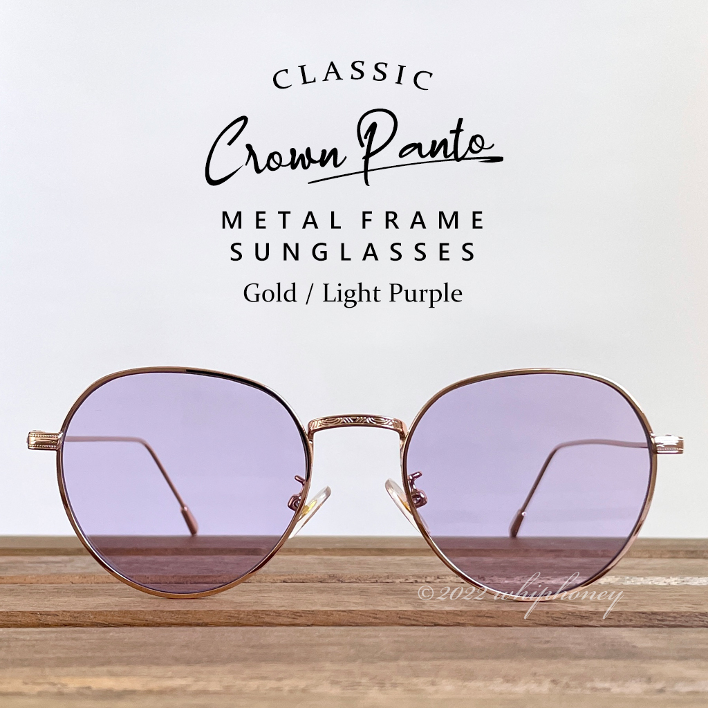 レトロシッククラウンパント メタルUVサングラス ライトパープル ゴールド 金縁