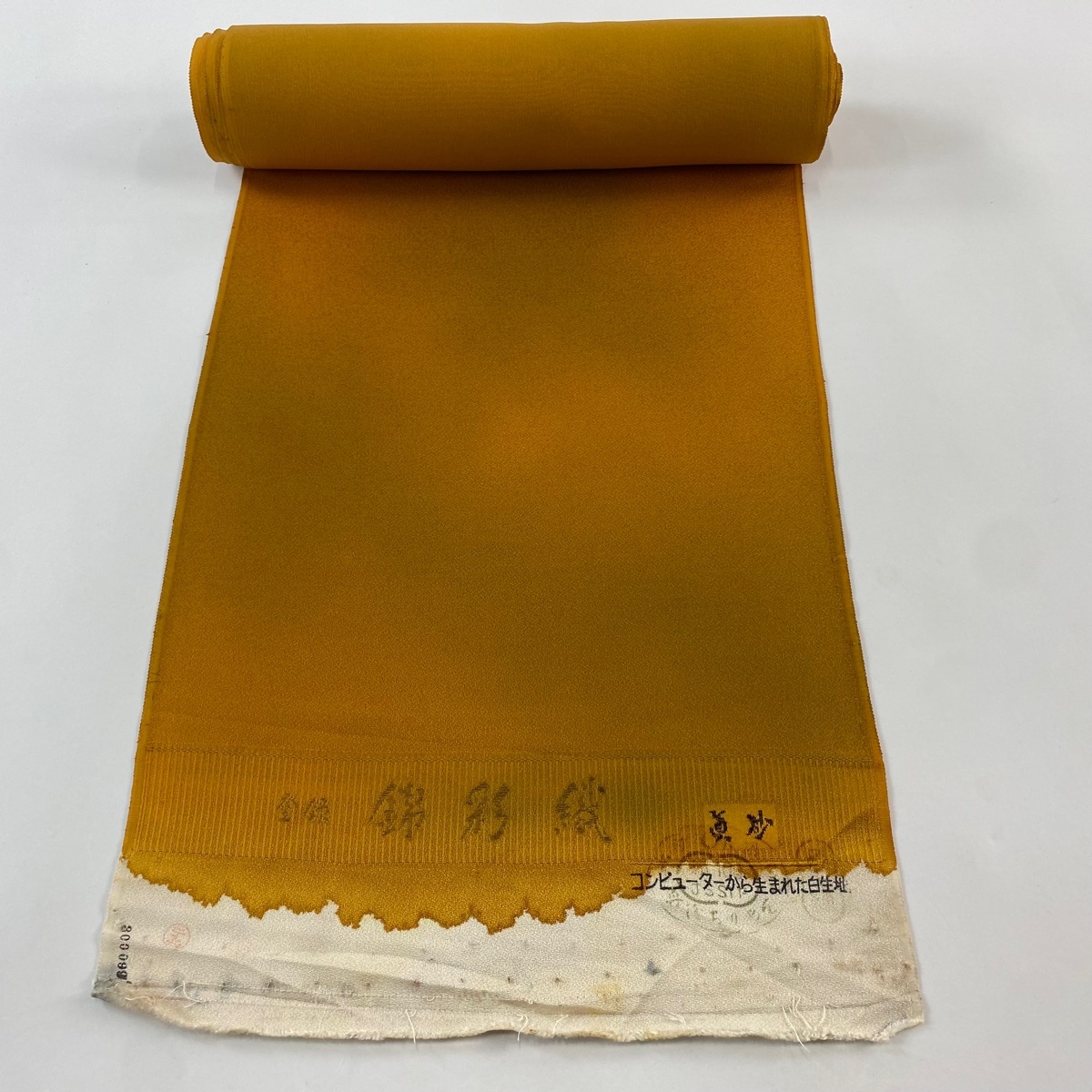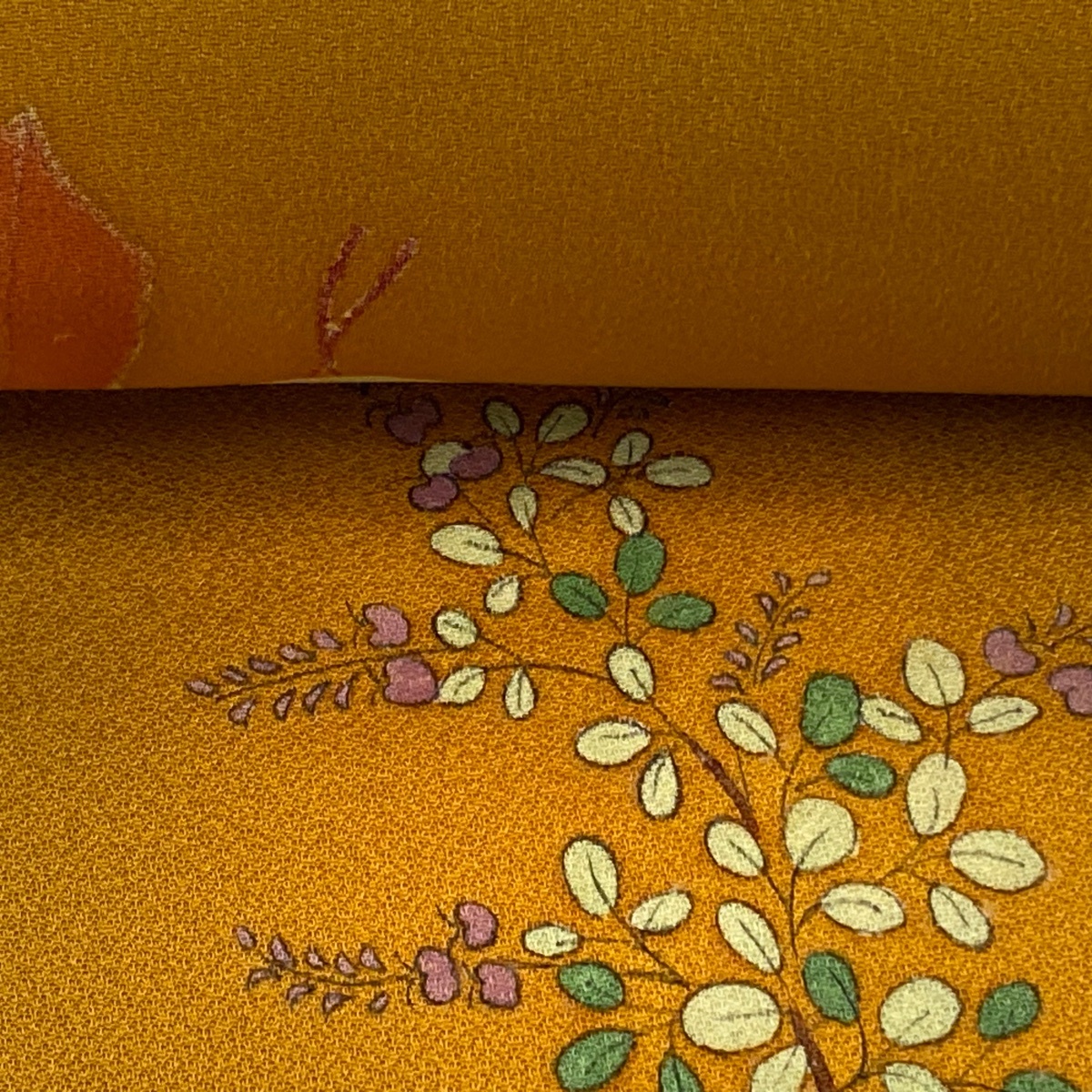 | 反物 秀品 付下げ 人物 萩 ぼかし 縮緬 山吹茶色 正絹 【中古】 |