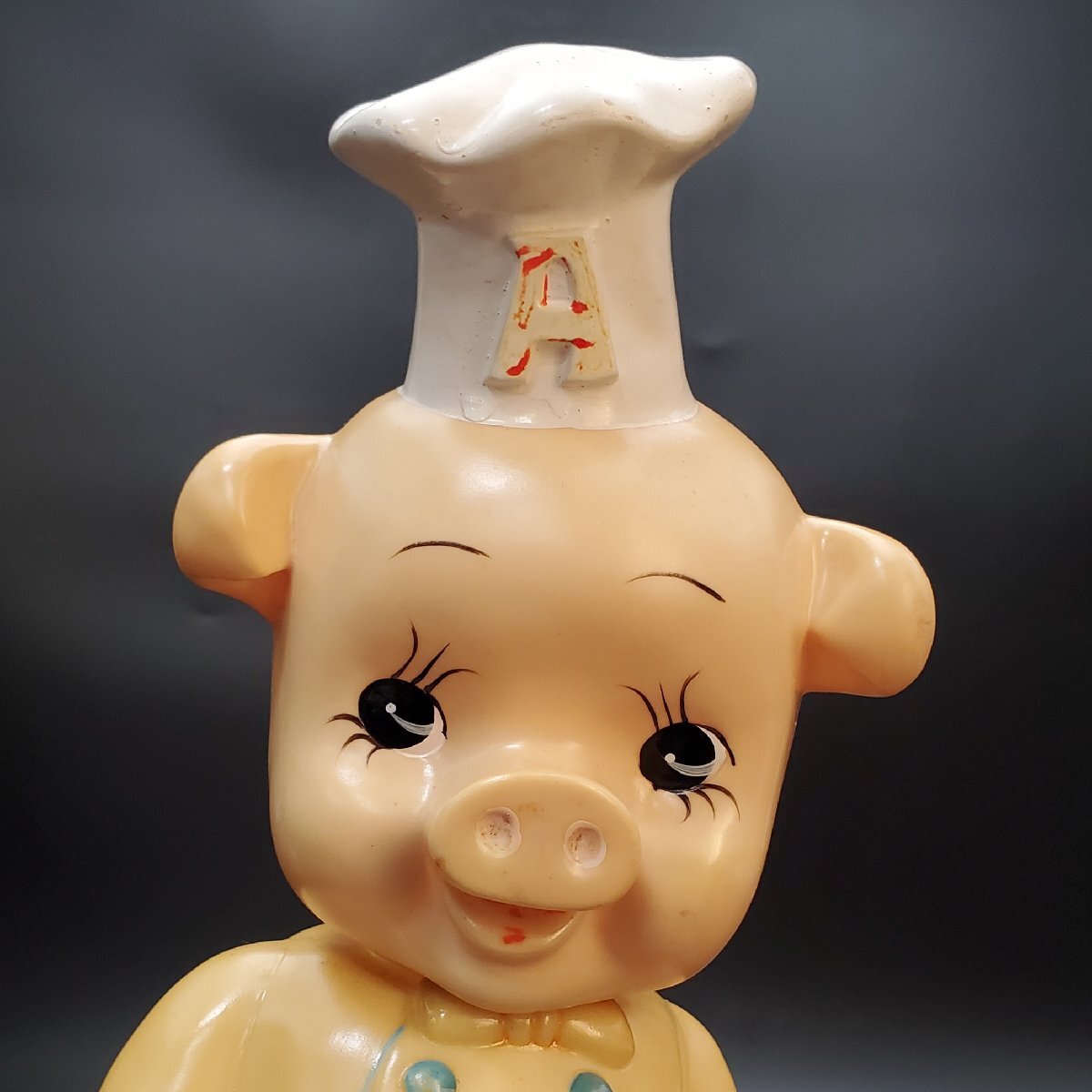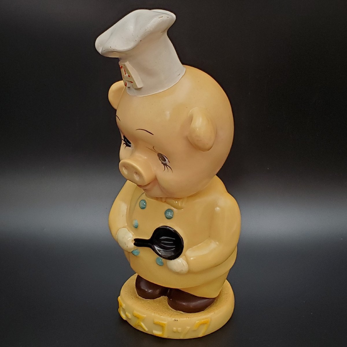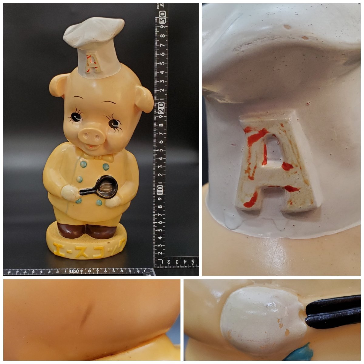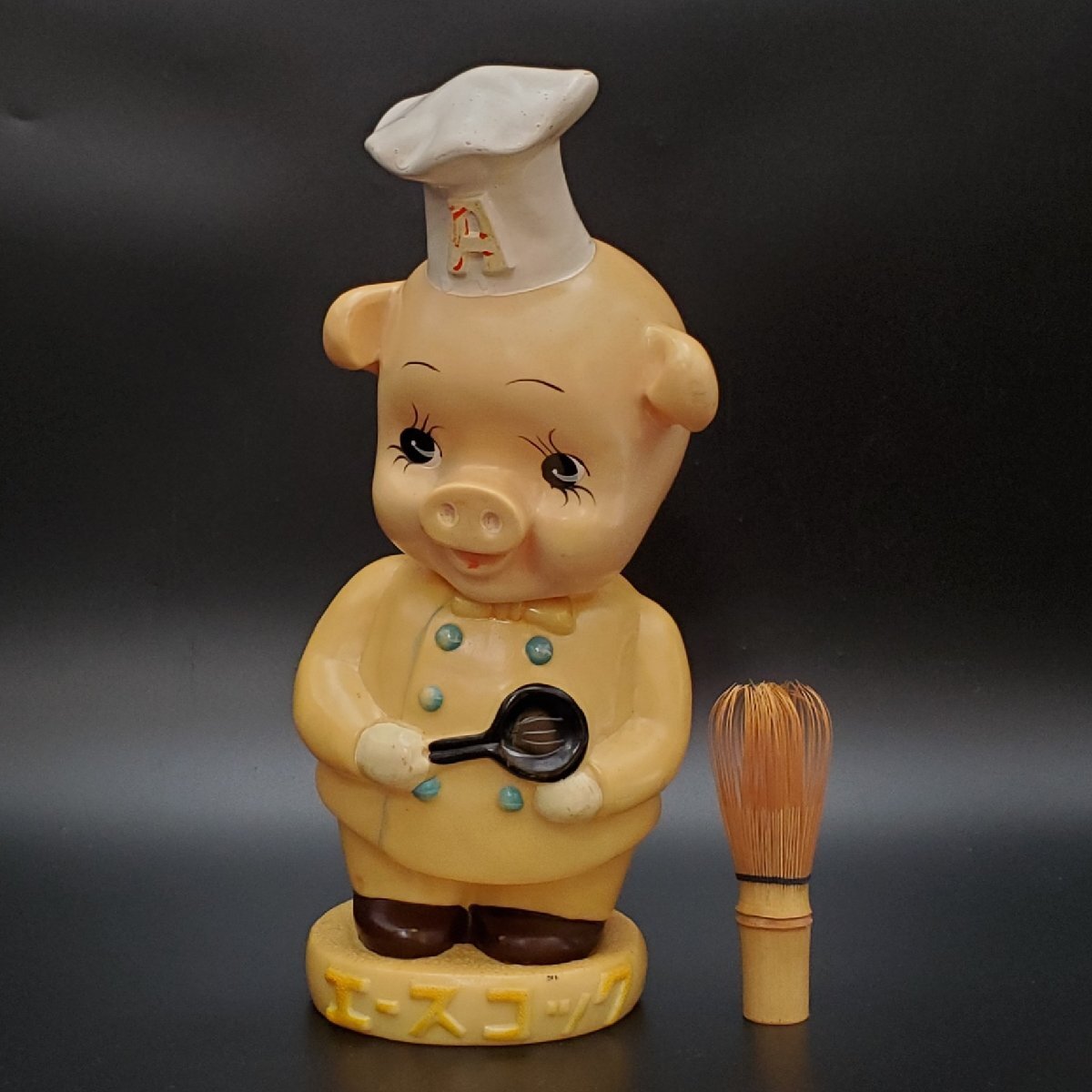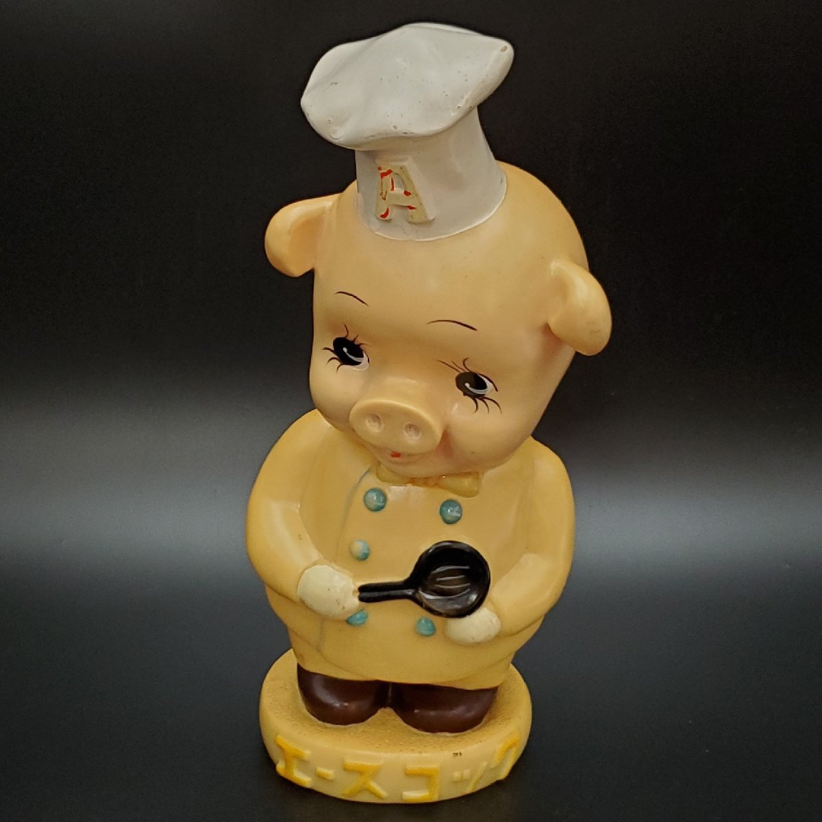 【宝蔵】当時物 昭和レトロ エースコック こぶたのコック姿 ソフビ人形 高さ約30cm