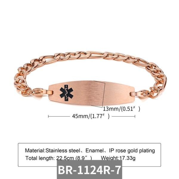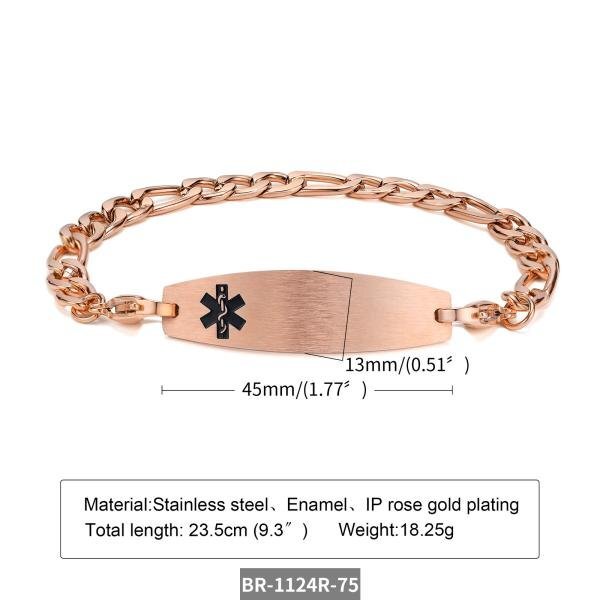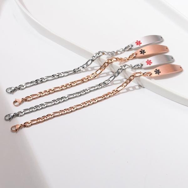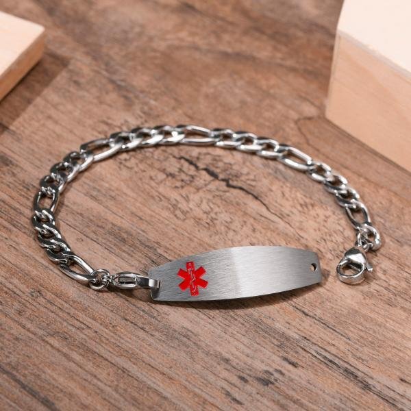 フリー 刻印 メディカル ブレスレット メンズ レディース ステンレス スチール フィガロ チェーン ID バングル エマージェンシー コンタクト リマインダー ジュエリー無料刻印
