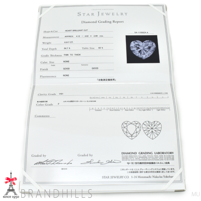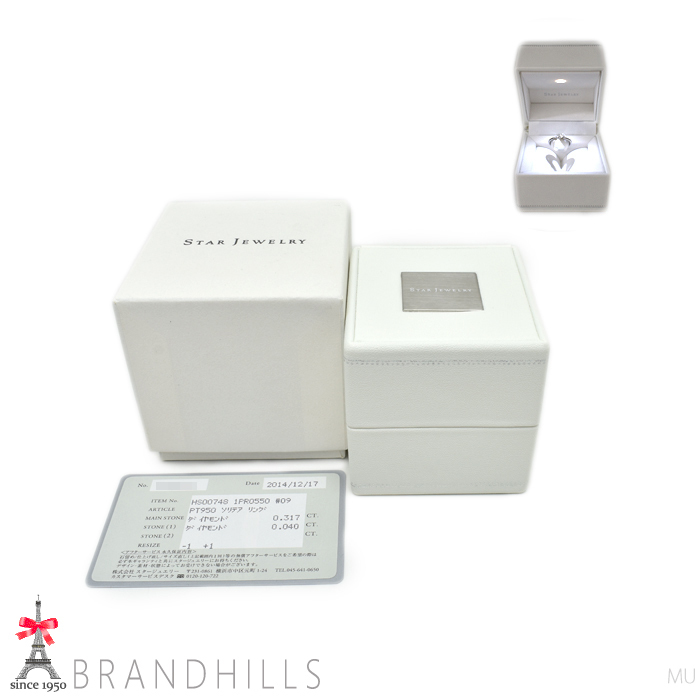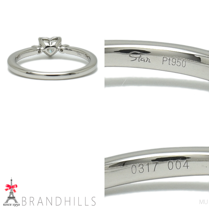 スタージュエリー ダイヤモンド 0.317ct 0.04ct リング ハートシェイプ ソリティア F-VS1 PT950 指輪 #8 STAR JEWELRY 極美品
