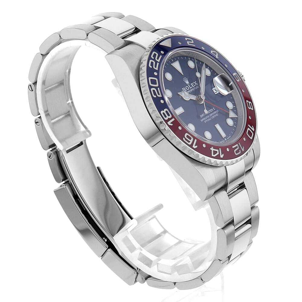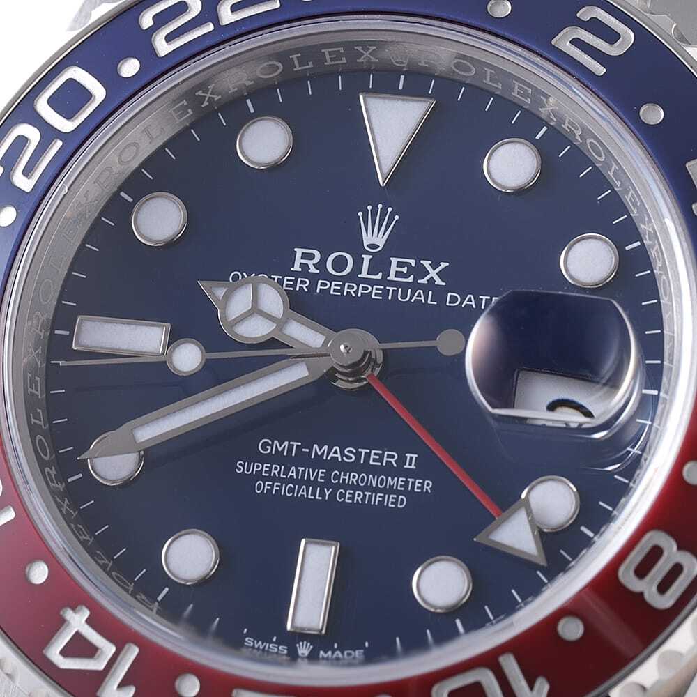 モデル情報 | バーゼルワールド2019にて発表されたモデル。定番人気の"GMTマスター"赤青ベゼルにオイスターブレスを搭載したホワイトゴールドモデルです。ムーブメントにはCal.3285を搭載。香箱の構造が一新されたことによりパワーリザーブが70時間に延長されています。ケースサイズはビジネスでも使いやすい40mmサイズ。防水性は100mです。 |