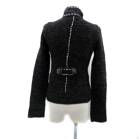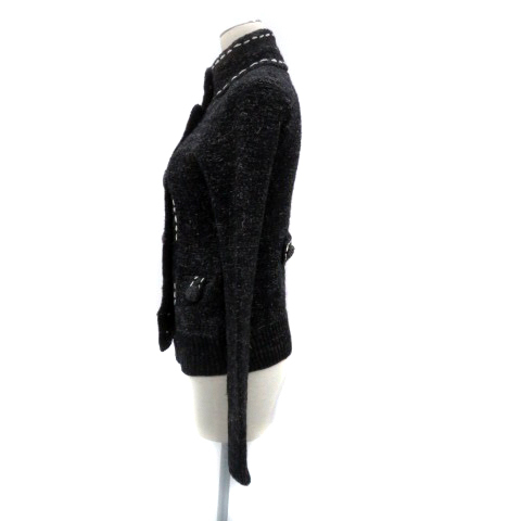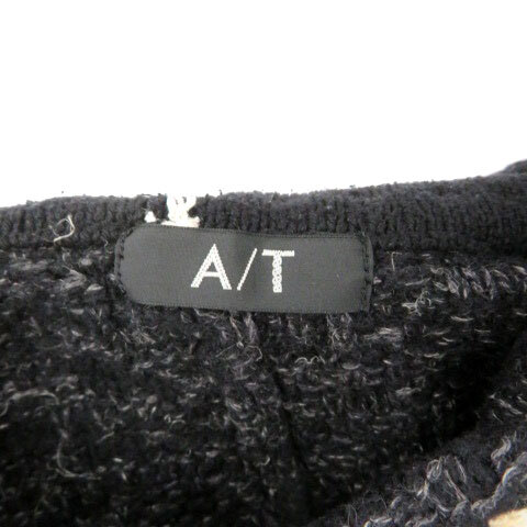 アツロウタヤマ A/T ニットジャケット スタンドカラー ショート丈 ダブルボタン シルク混 麻 リネン混 黒 オフホワイト レディース