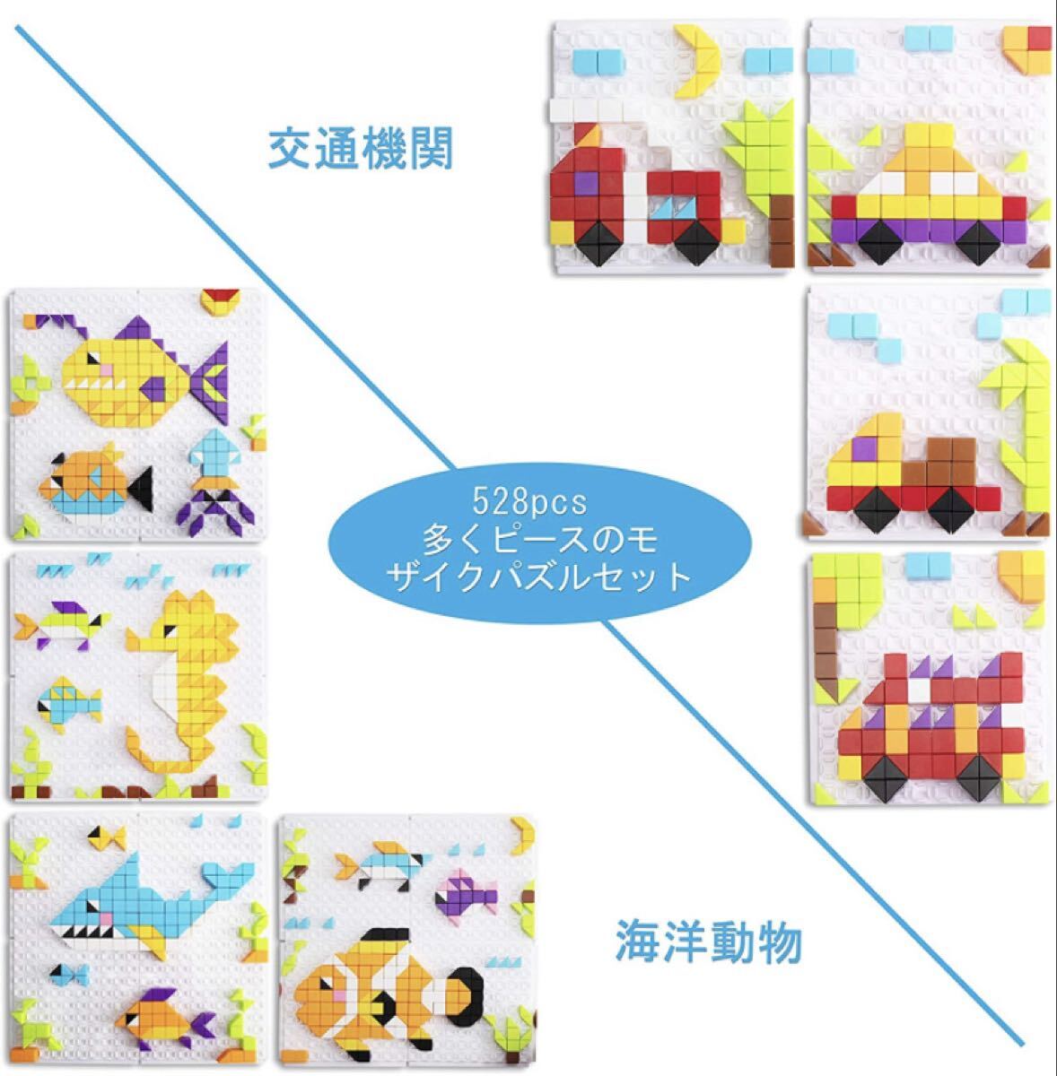 ★ 【528ピースモザイクパズルセット】このモザイクパズルのセット内容は カラフルなブロック*528、ボード*9、組み合わせのエッジ*8、取り外しのツール*3、バックル*3があります。他の会社の製品より部品が多いです。子供は友達と一緒に遊ぶことができます。(子供には大人の監督下で使用する)